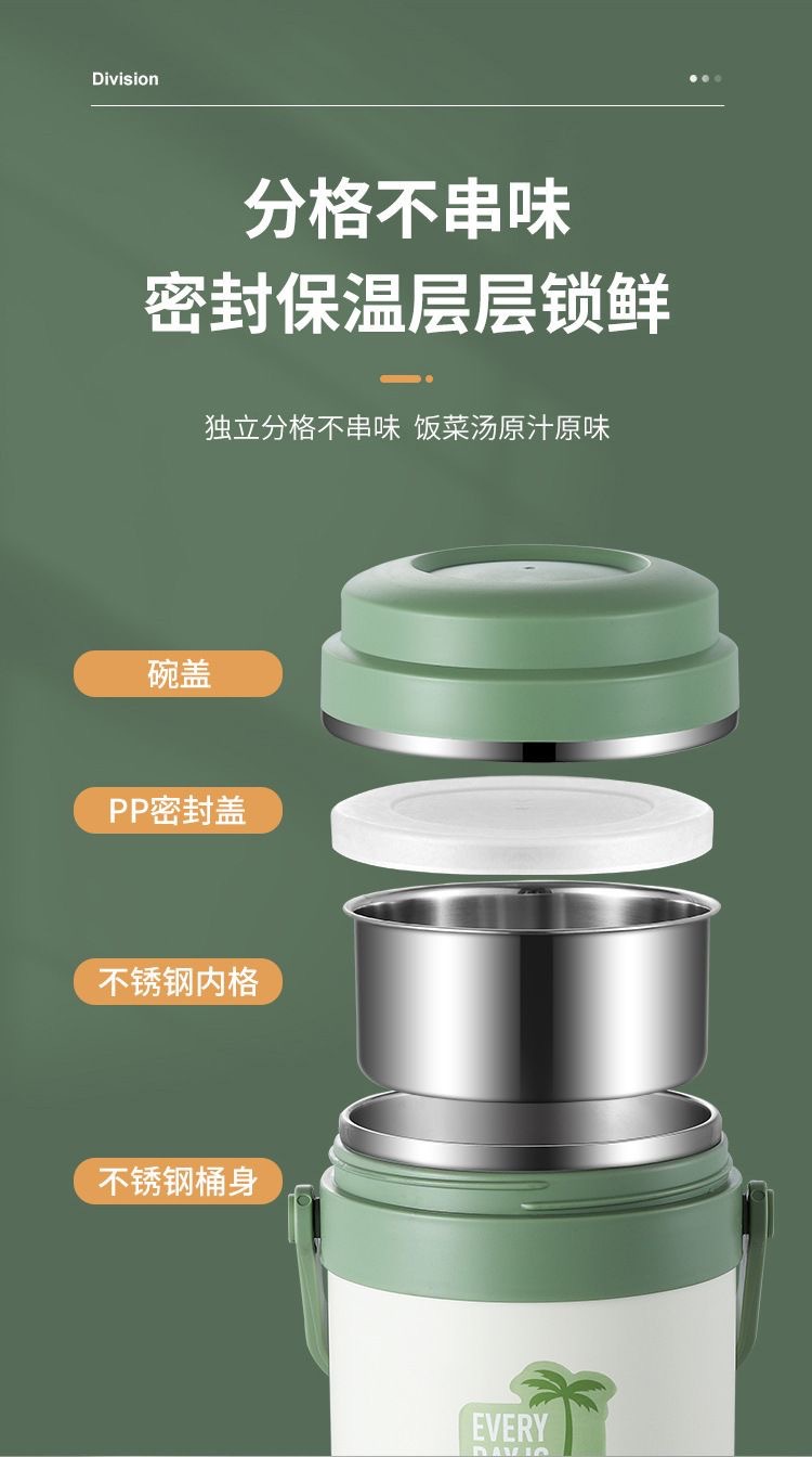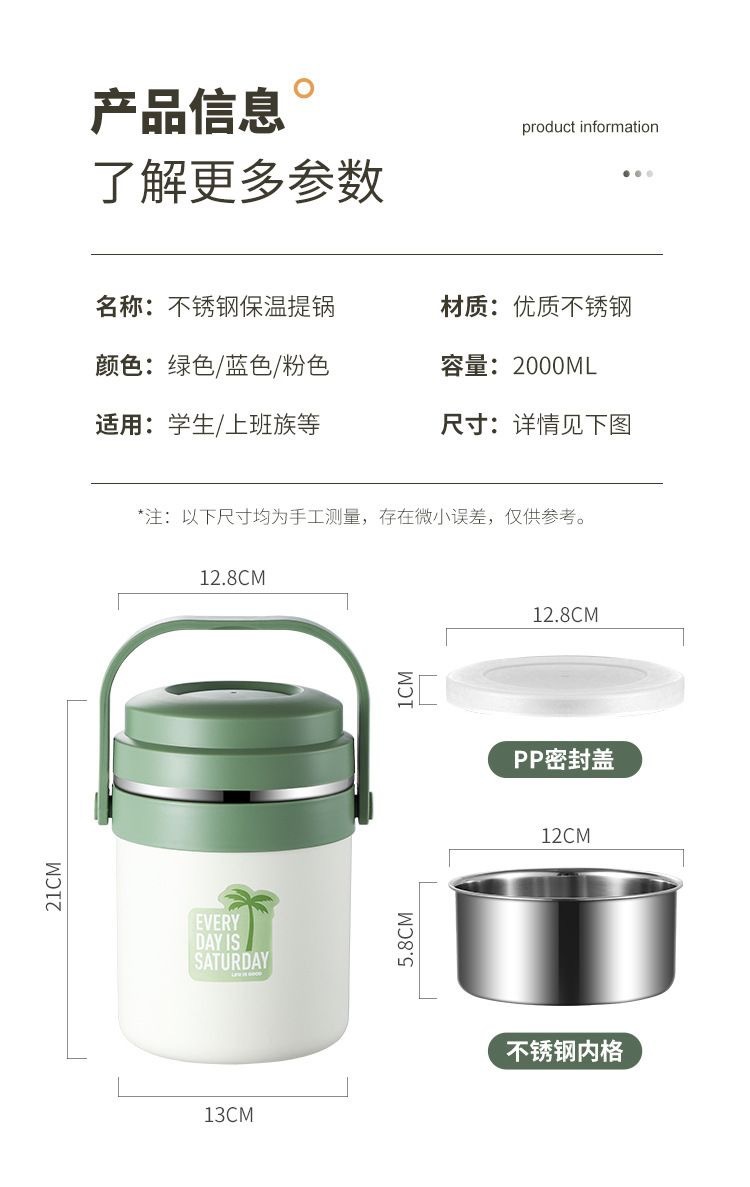 qixia portable insulated rice bucket stainless steel insulation pot insulated barrel with rice sealed color lunch box bento lunch box