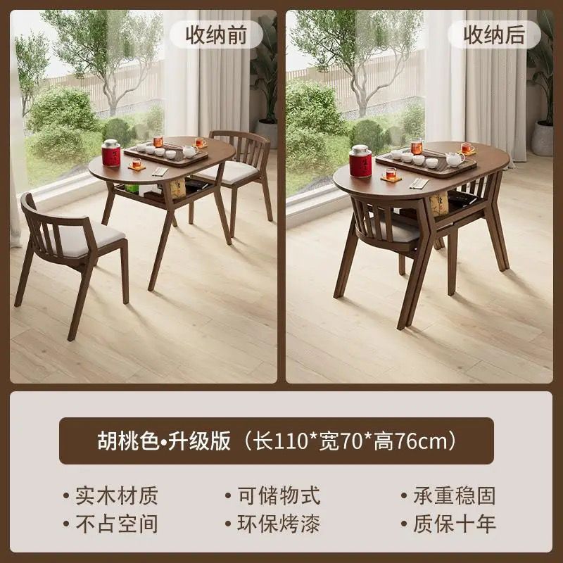wood color upgraded tea table + two chairs