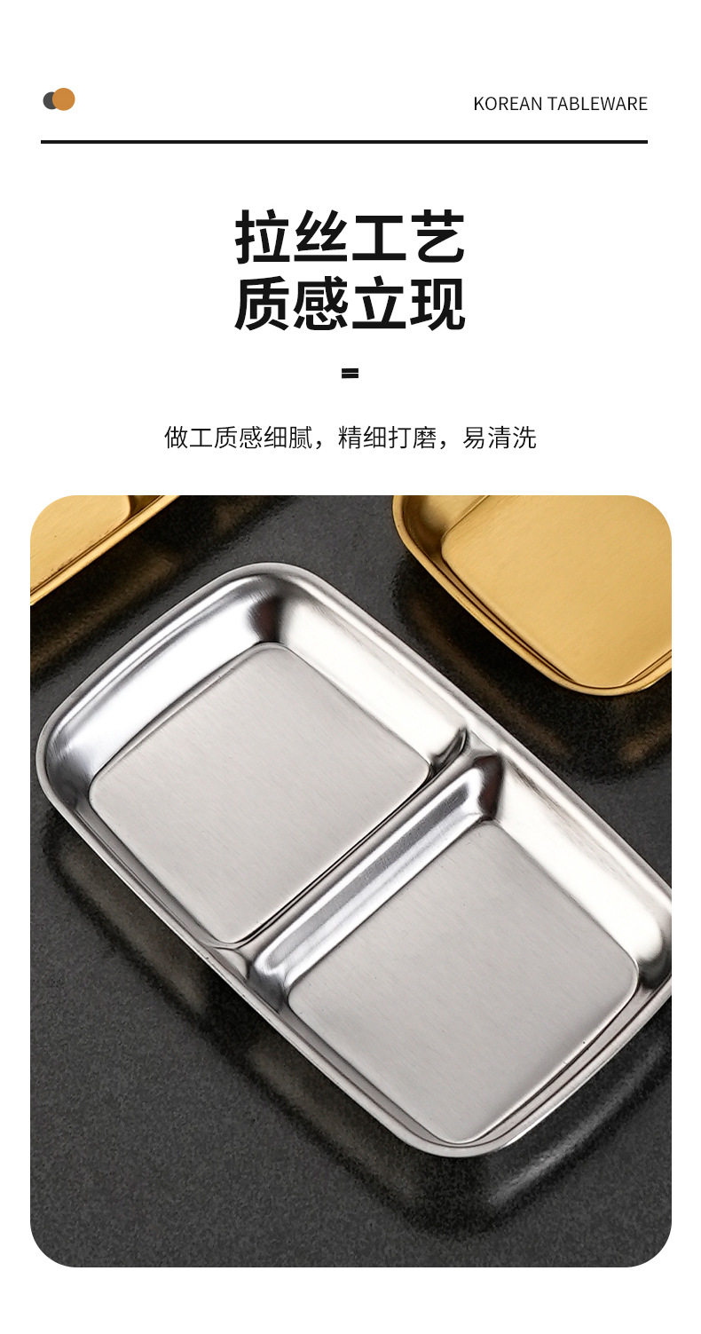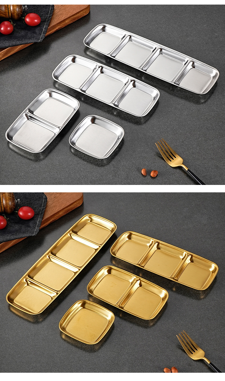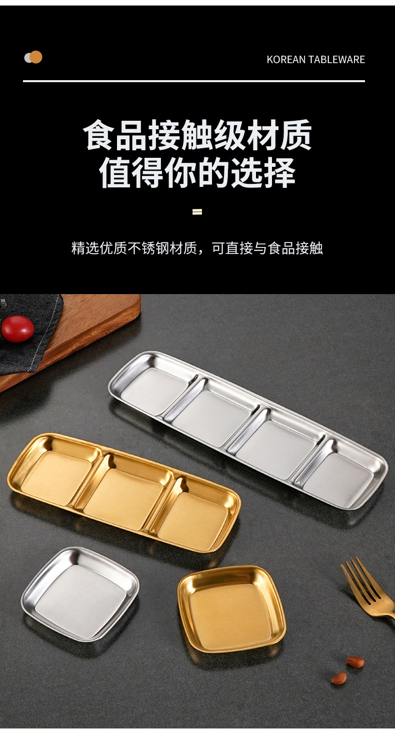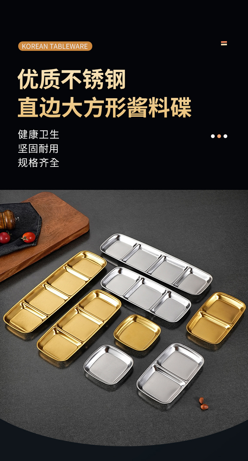 stainless steel korean barbecue seasoning dish square cut multi-grid sauce dish commercial hot pot golden grid saucer dish
