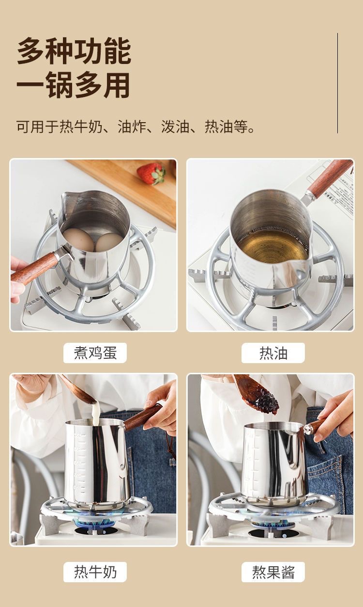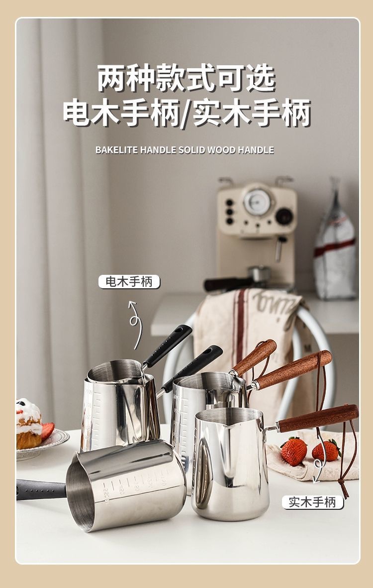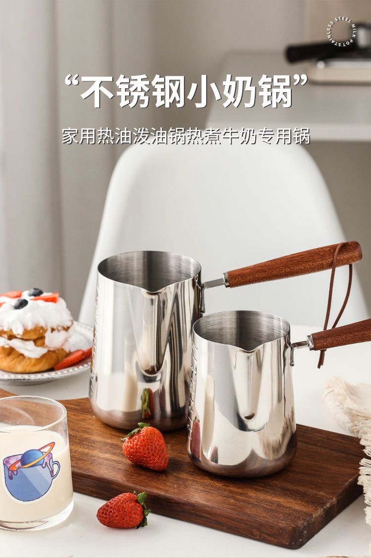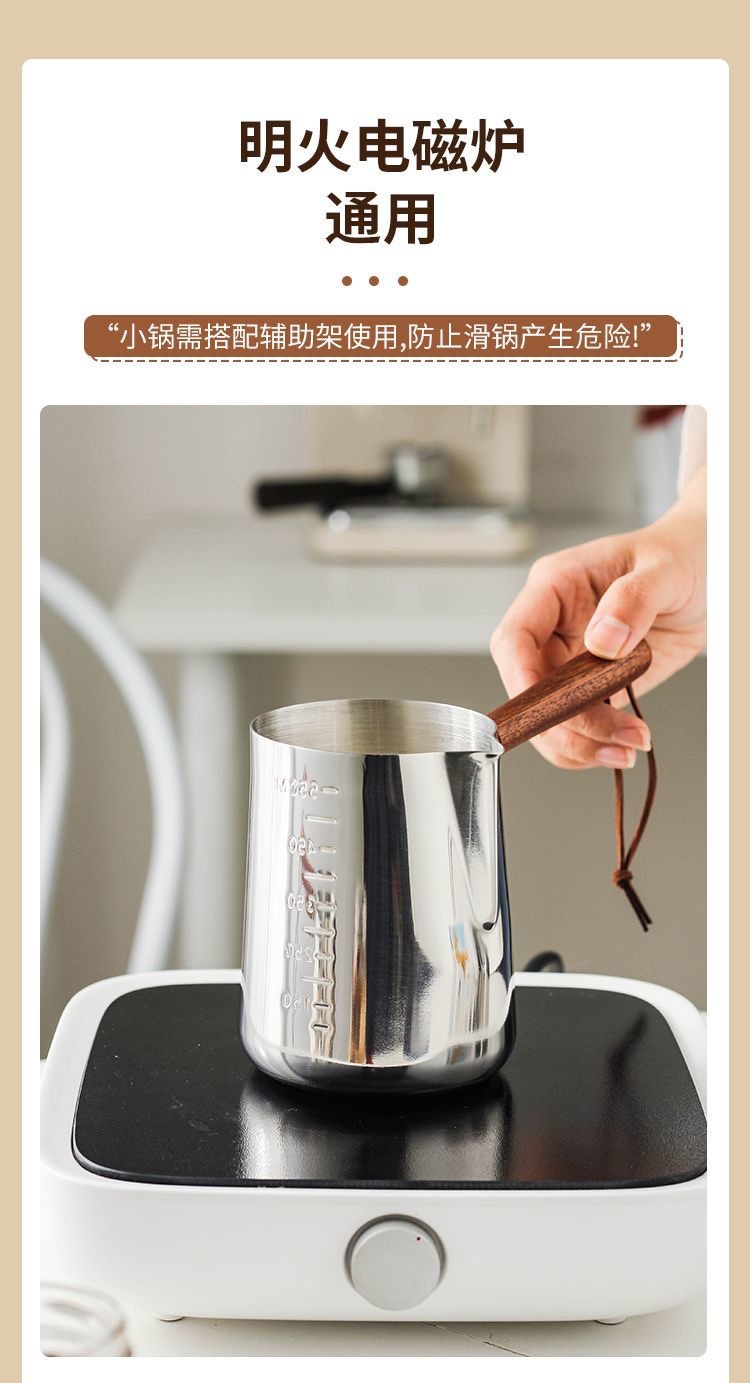 304 stainless steel small milk boiling pot with scale coffee steam pitcher hot milk dedicated pot complementary food thickened mini pot