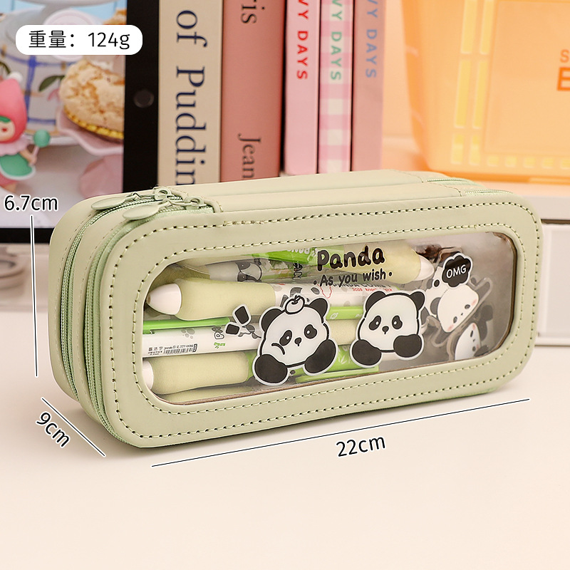 double layer pencil case-window beige panda family