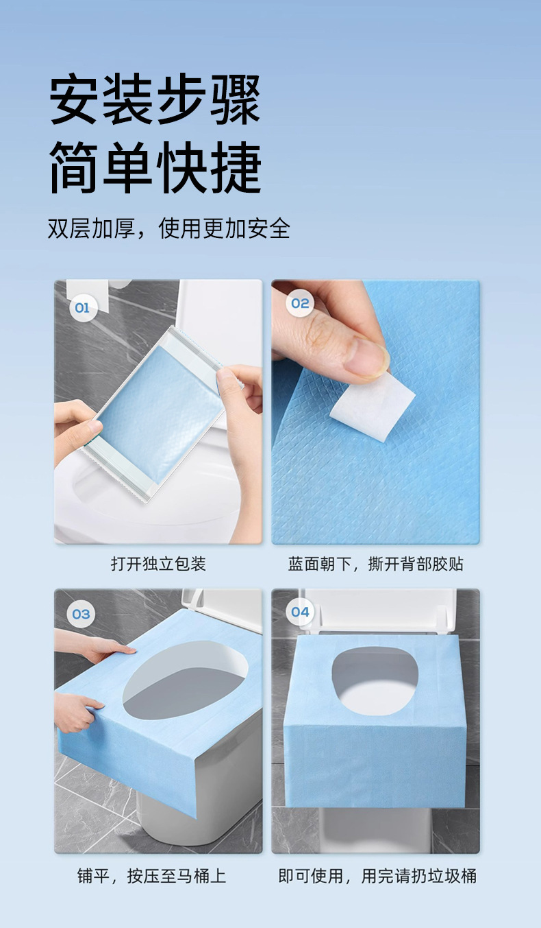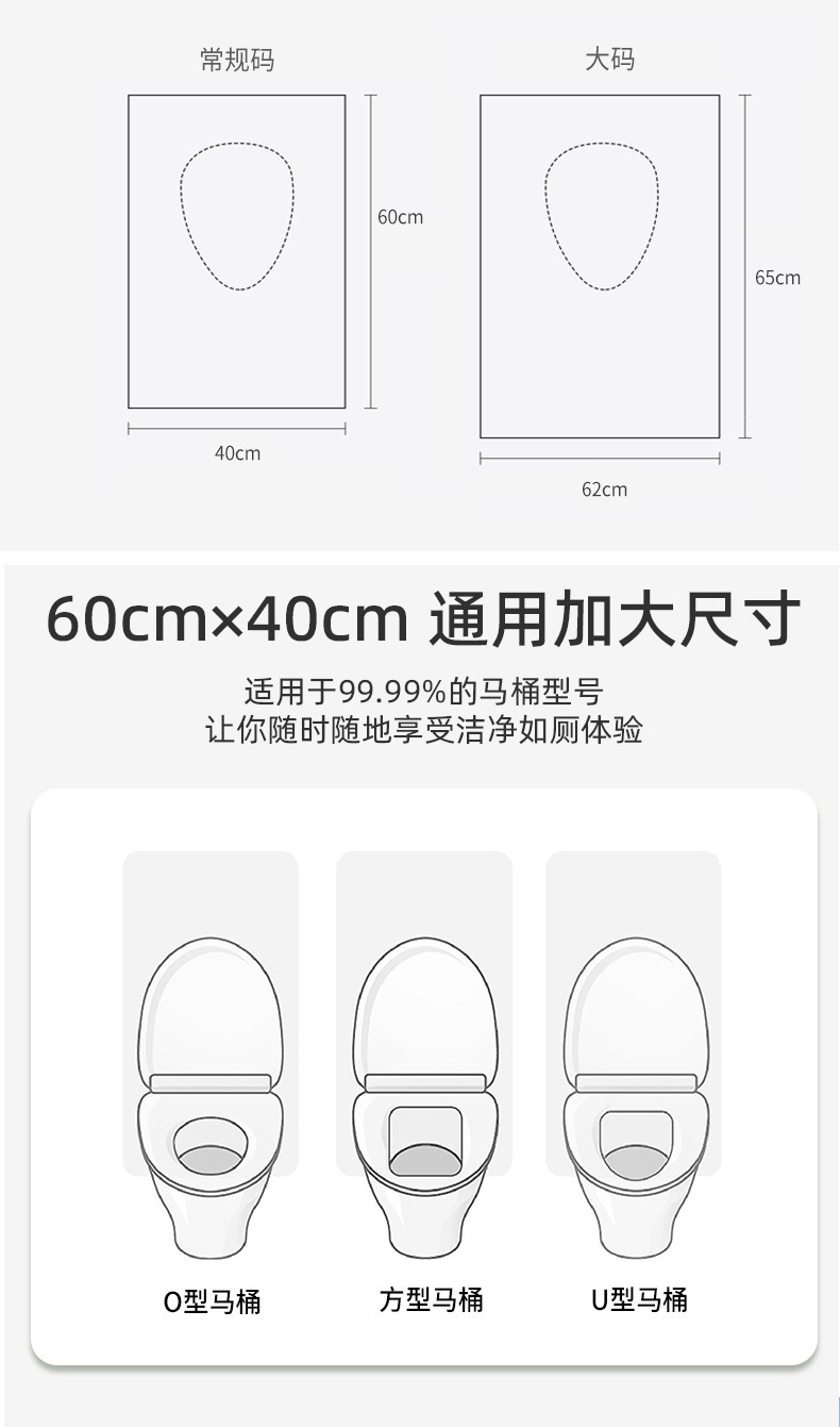 printing extra large adhesive double layer paper toilet seat cover 5 pieces/bag (each piece is installed independently)