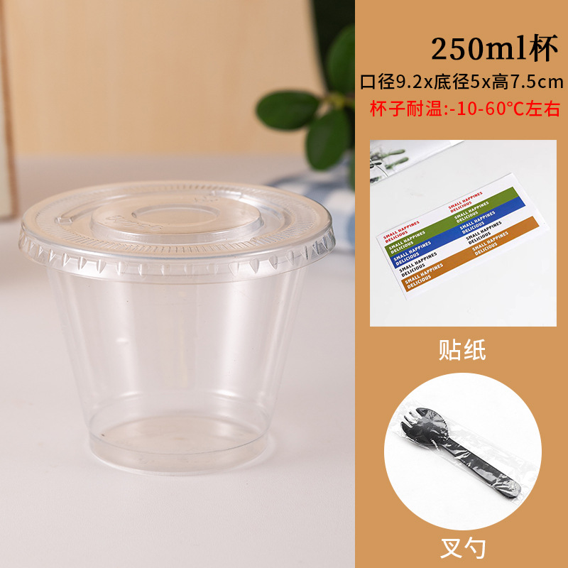 .;250ml cup + non-porous flat lid + spork + small sticker