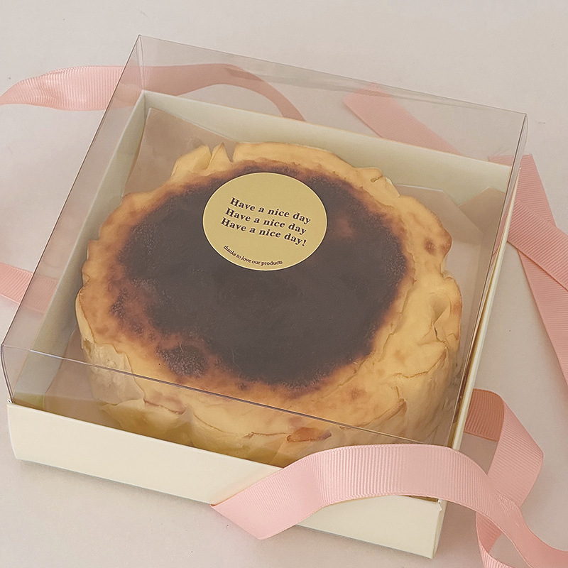 see details; 6-inch kraft paper transparent basque box