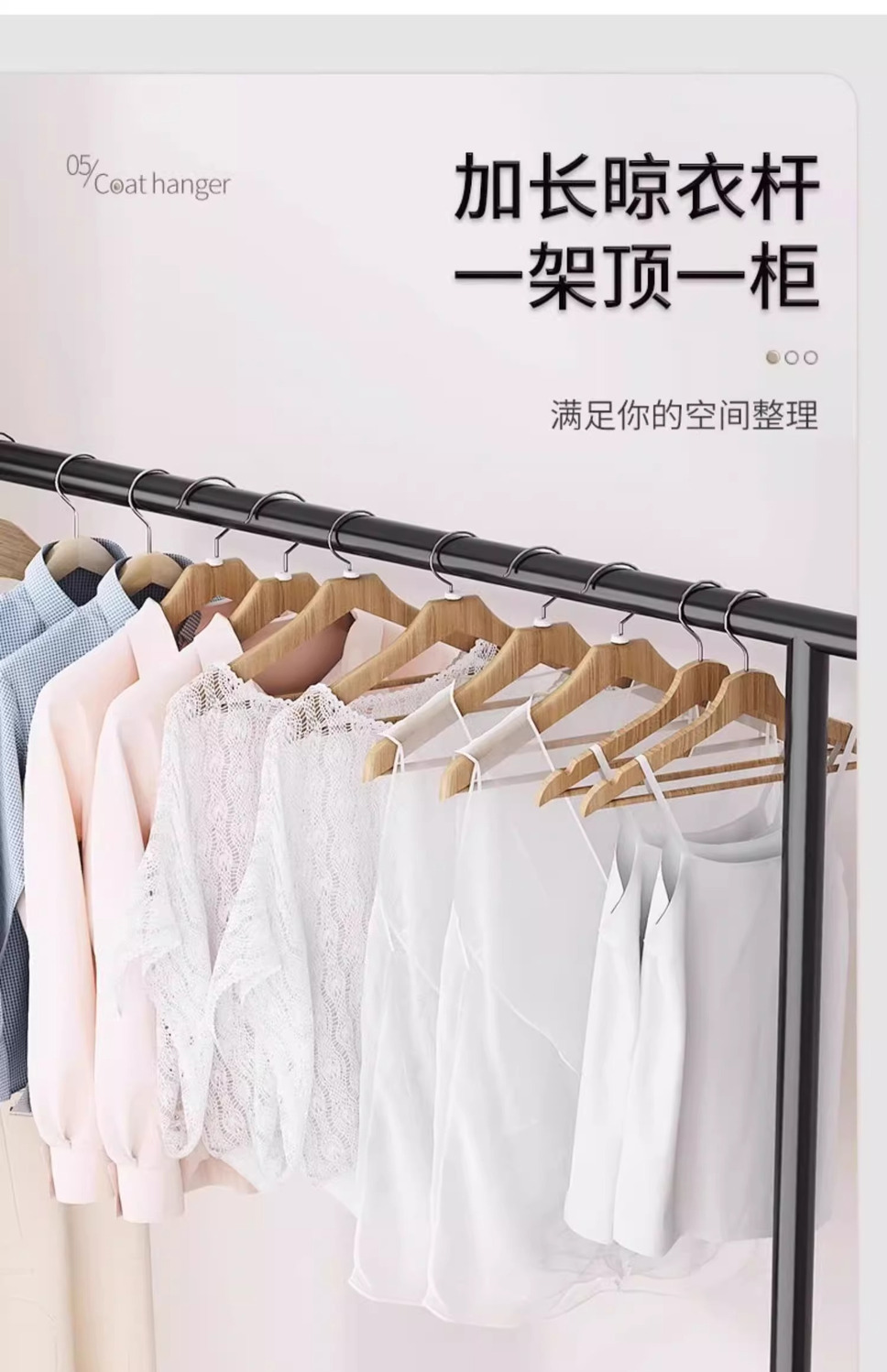 110cm black single rod + double clothes hook