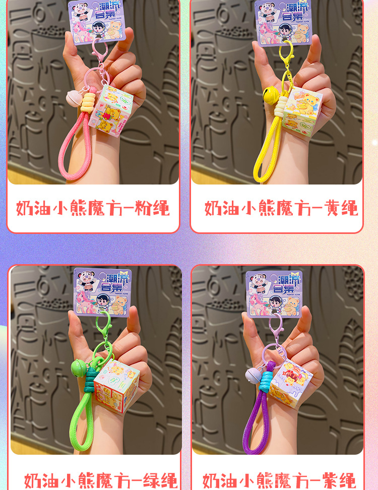 cream bear cube-purple rope