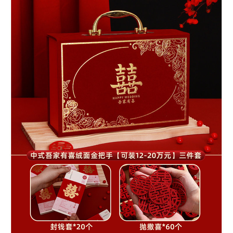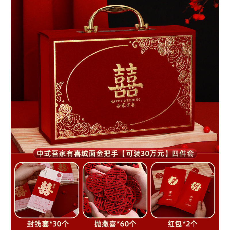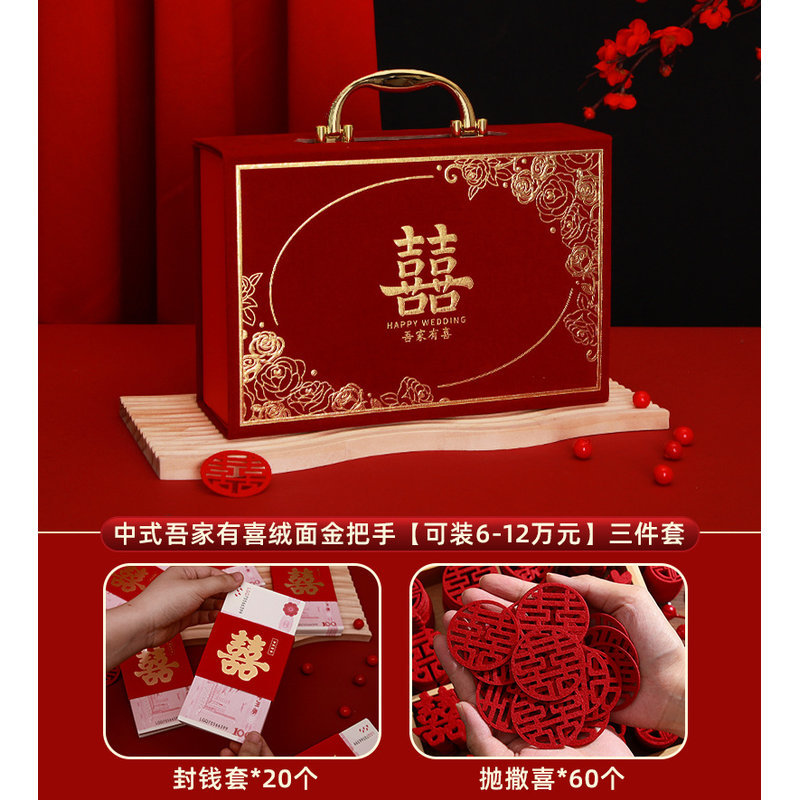 [full set of engagement 10 sets] chinese joyous suede gold handle [can hold 300000 yuan]]