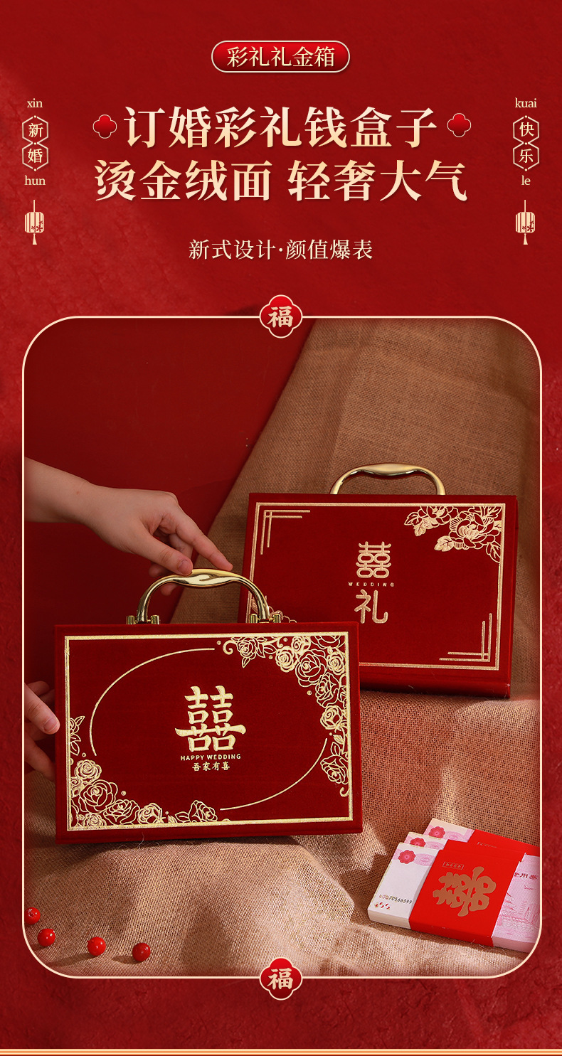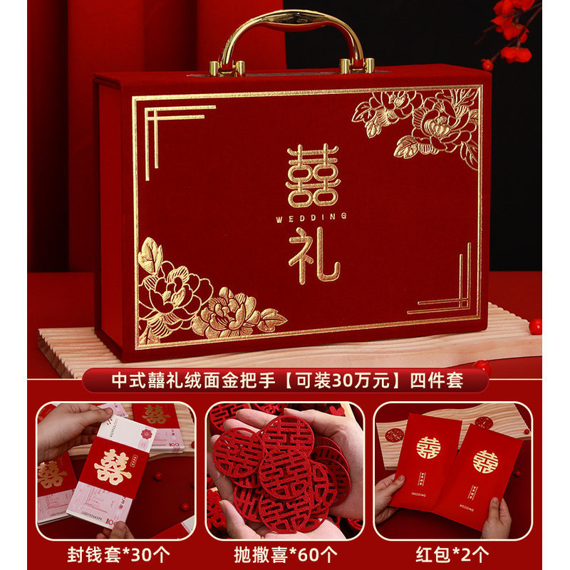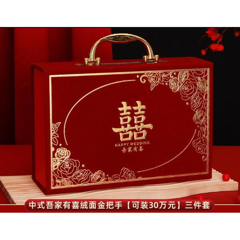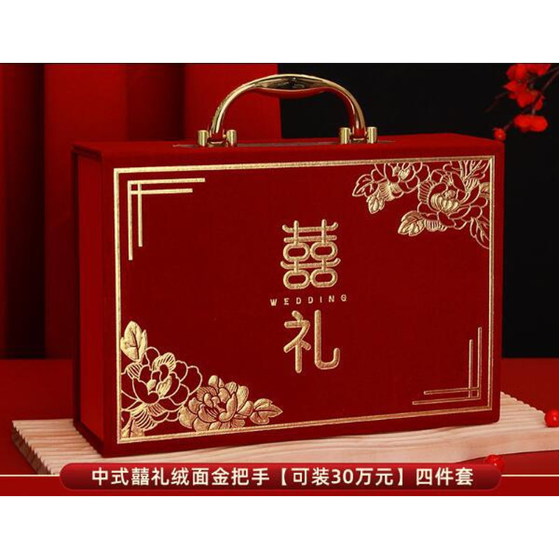 [full set of engagement 10-piece set] chinese-style suede gold handle [can hold 300000 yuan]]