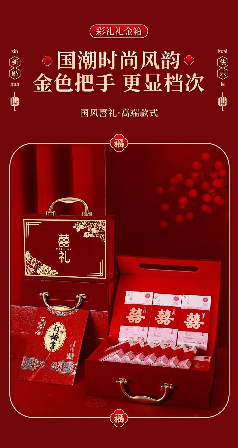 [full set of engagement 10 sets] chinese joyous suede gold handle [can hold 12-200000 yuan]]