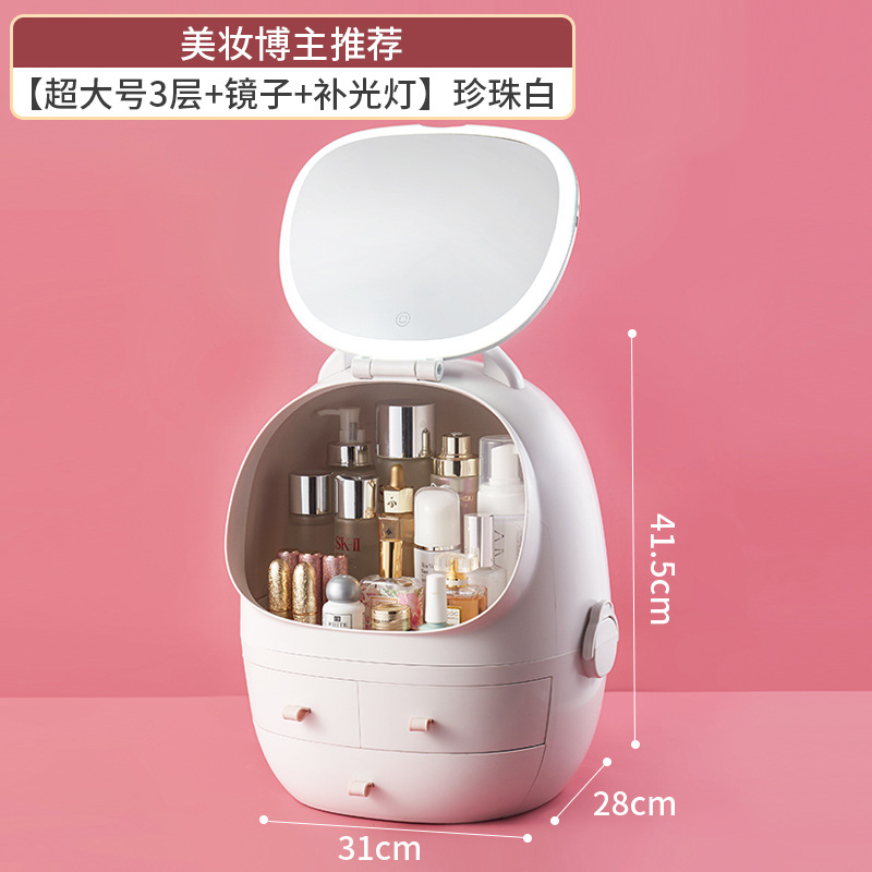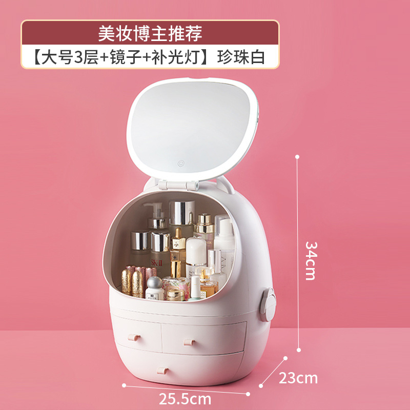 1772 large cosmetic case light mirror (pearl white)