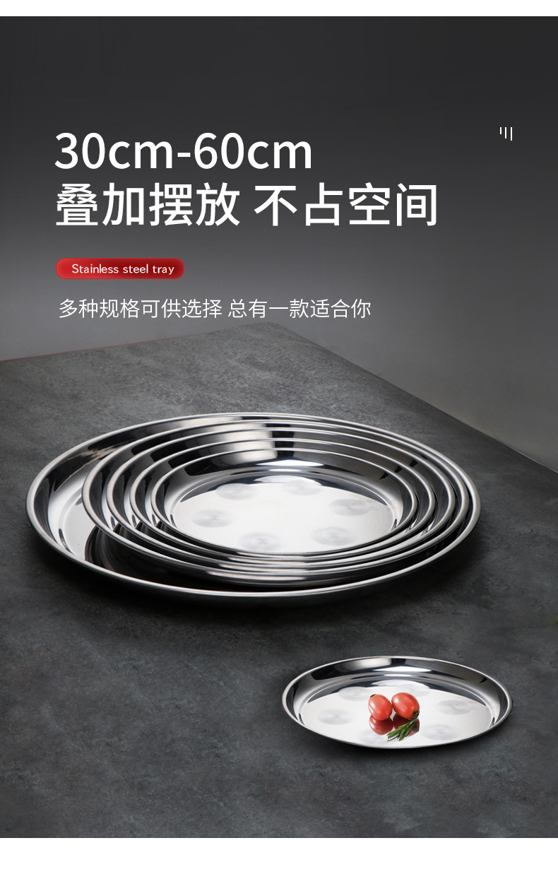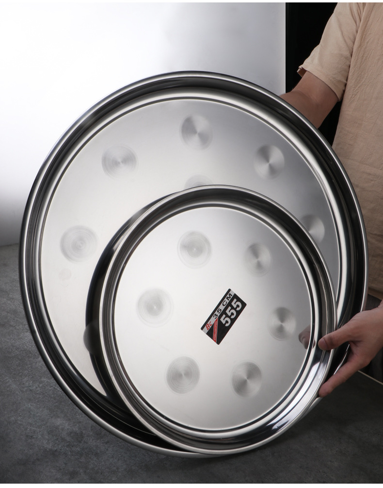 thickened stainless steel shallow plate wholesale household worship fruit plate embossed inch plate super large round flat tray