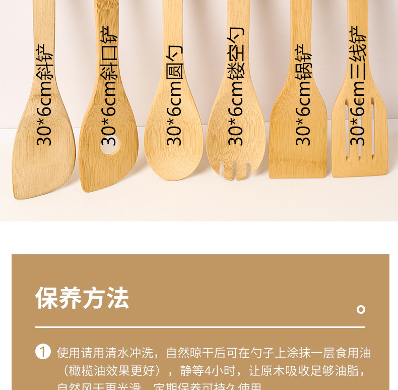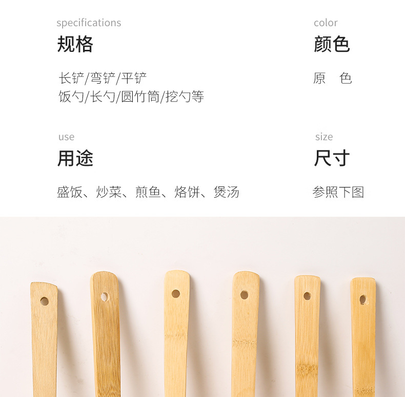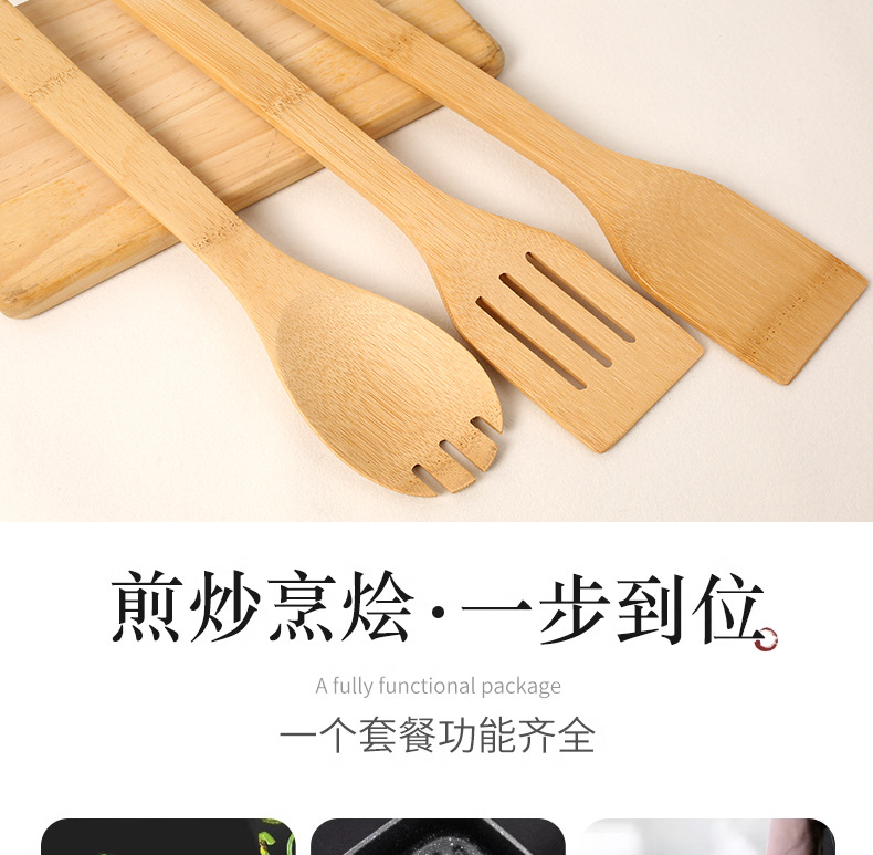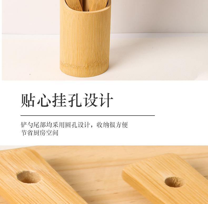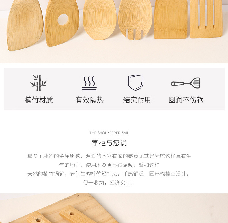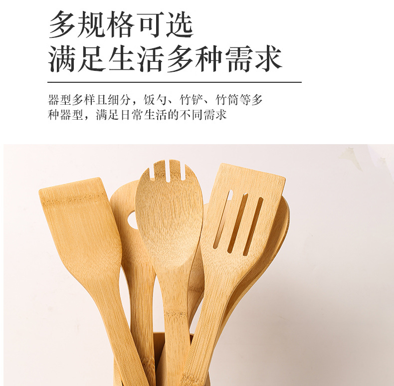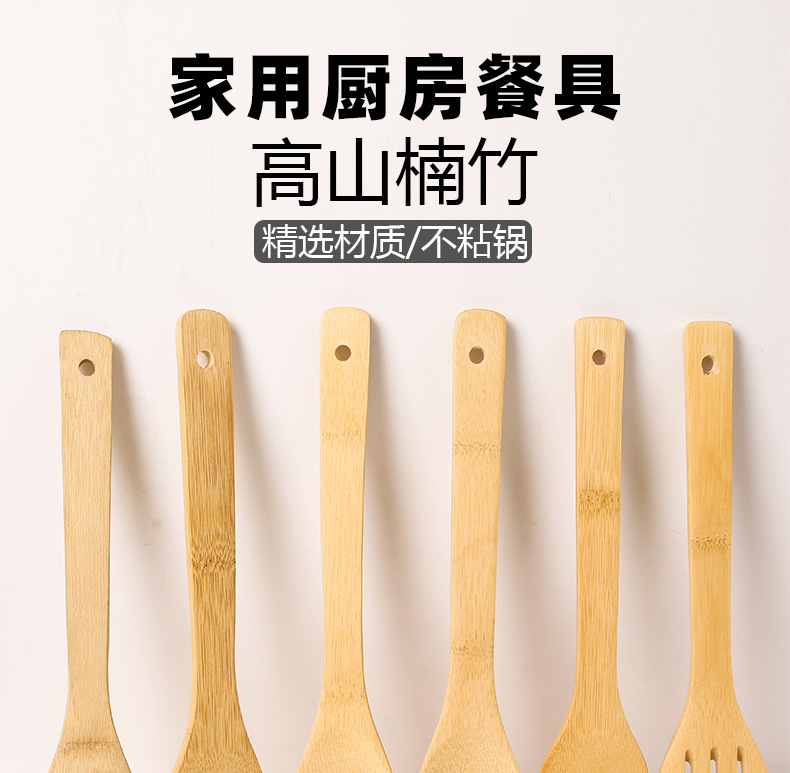 bamboo spatula spoon non-stick pan high temperature resistant spatula bamboo kitchen appliances suit kitchen six-piece set carved logo