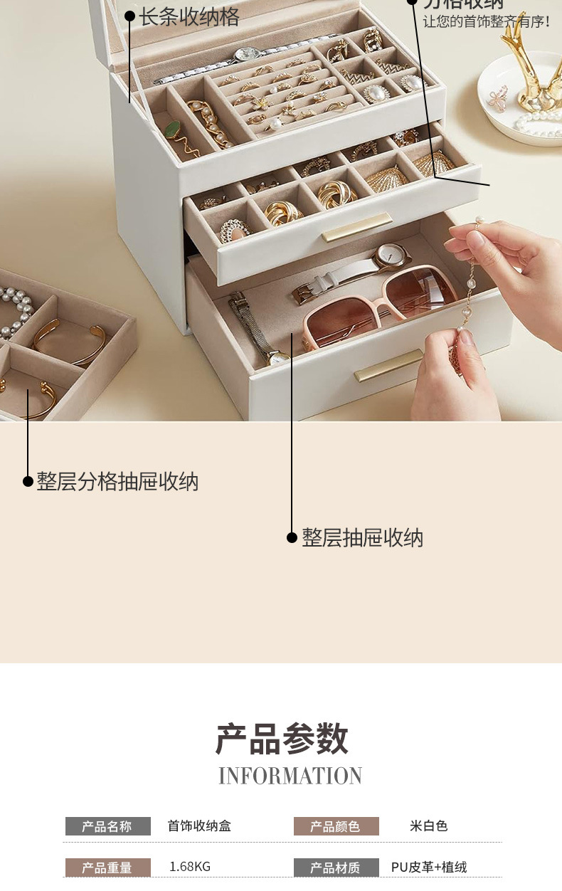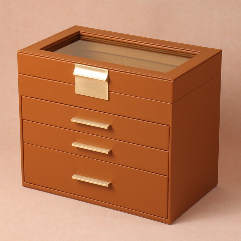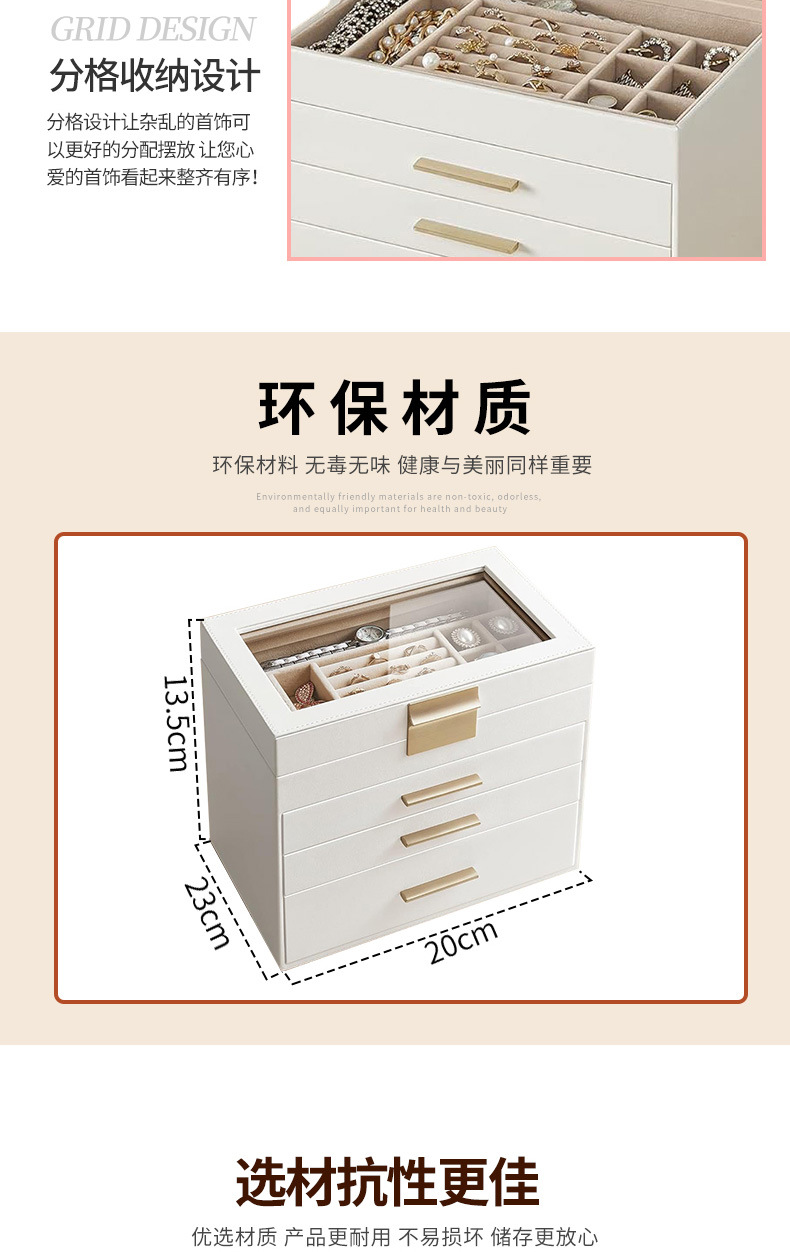 cross-border pu window jewelry box large capacity multi-layer square drawer ornament jewelry jewelry storage jewelry box