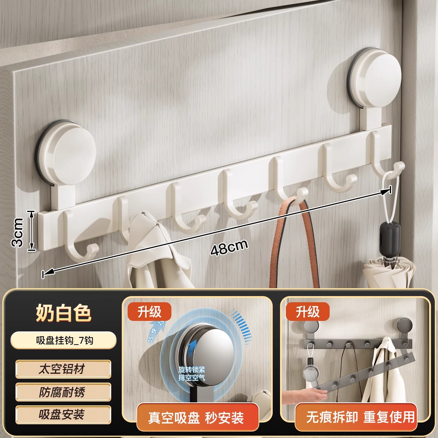 suction cup behind the door-milk white double hook-7 hook [strong suction cup storage up and down]]