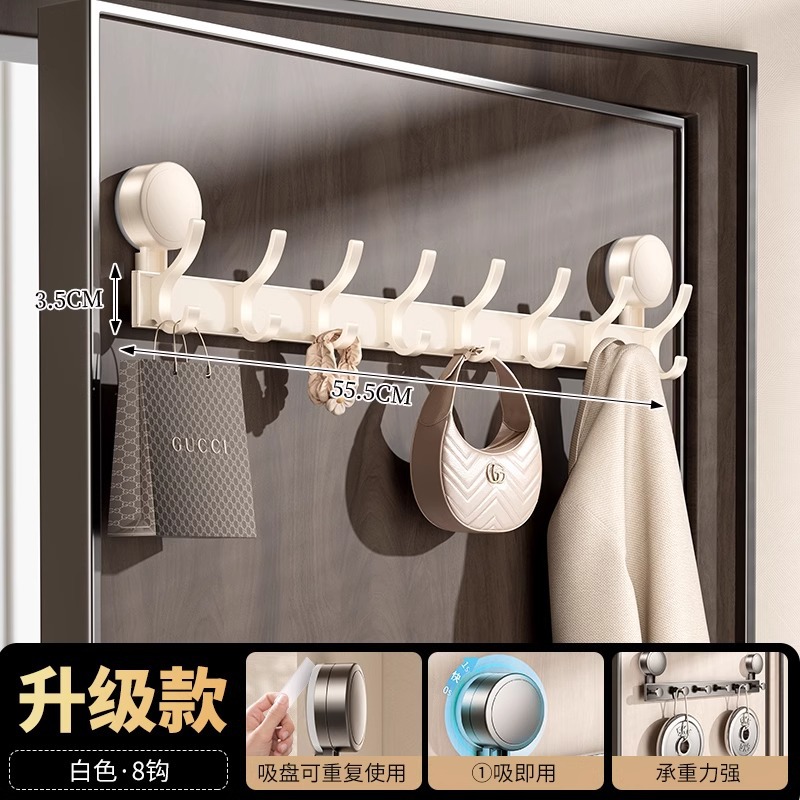 suction cup behind the door-milk white double hook-8 hook [strong suction cup storage up and down]]