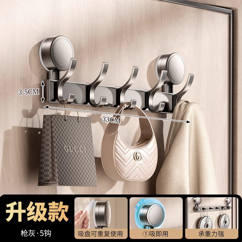 suction cup behind the door-gun gray single hook-5 hook [strong suction cup installation-free]]