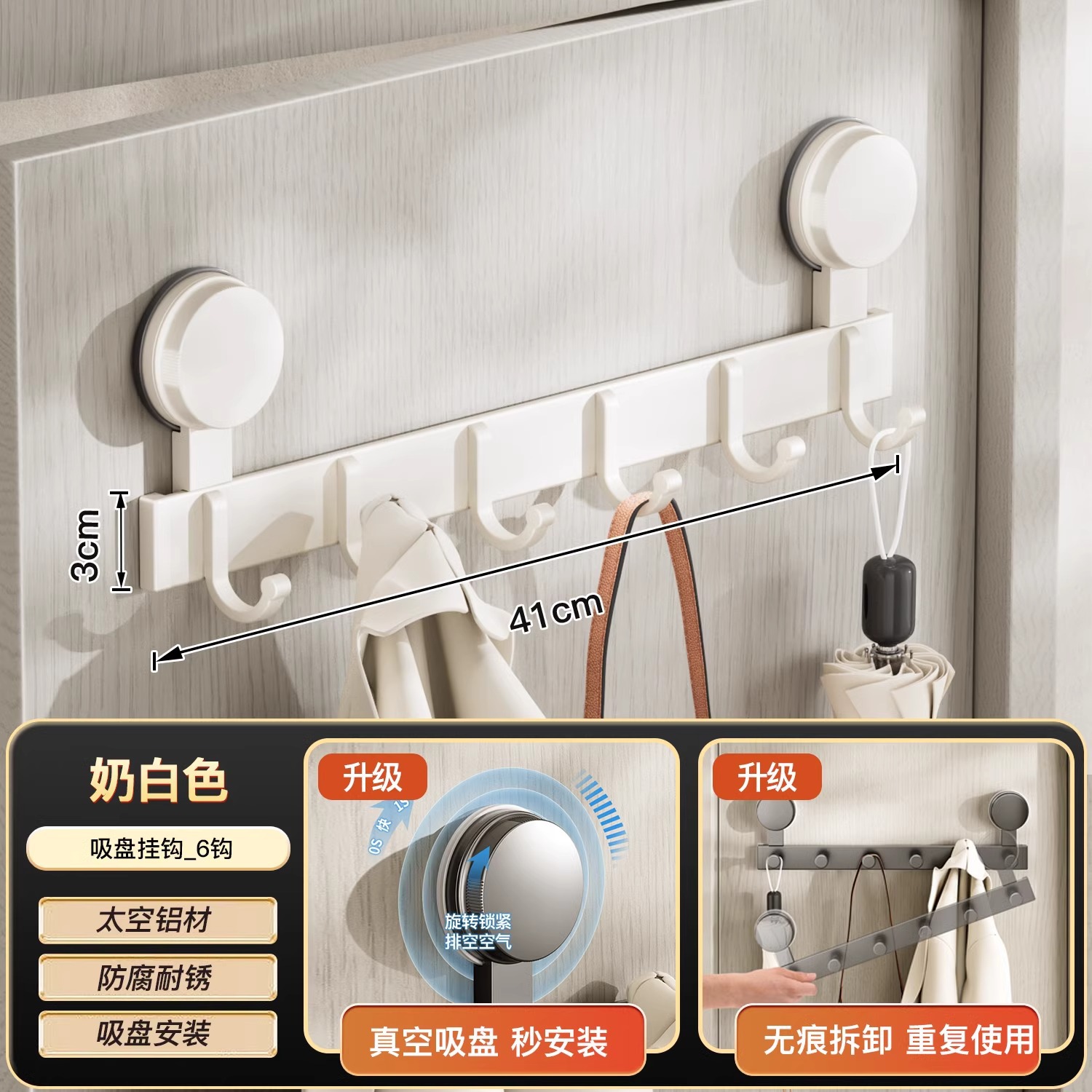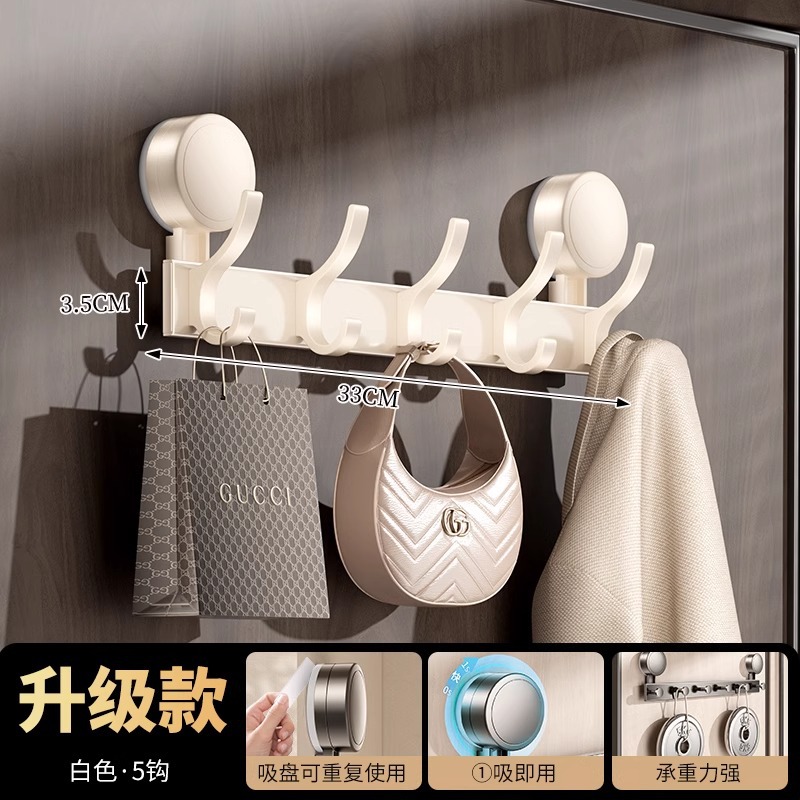 suction cup behind the door-milk white double hook-6 hook [strong suction cup storage up and down]]