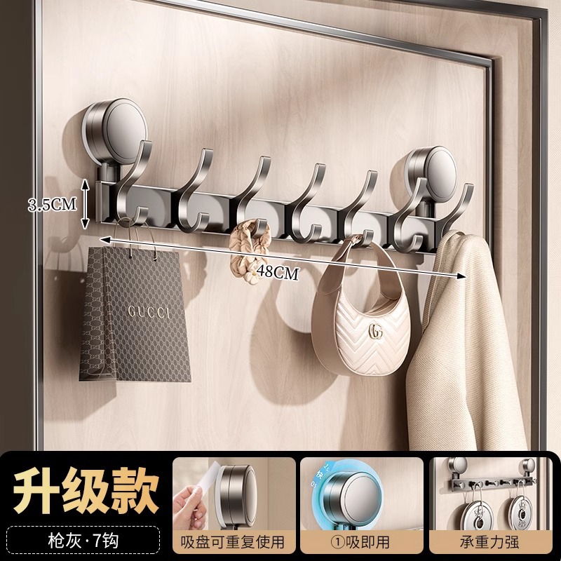suction cup behind the door-gun gray single hook-7 hook [strong suction cup installation-free]]