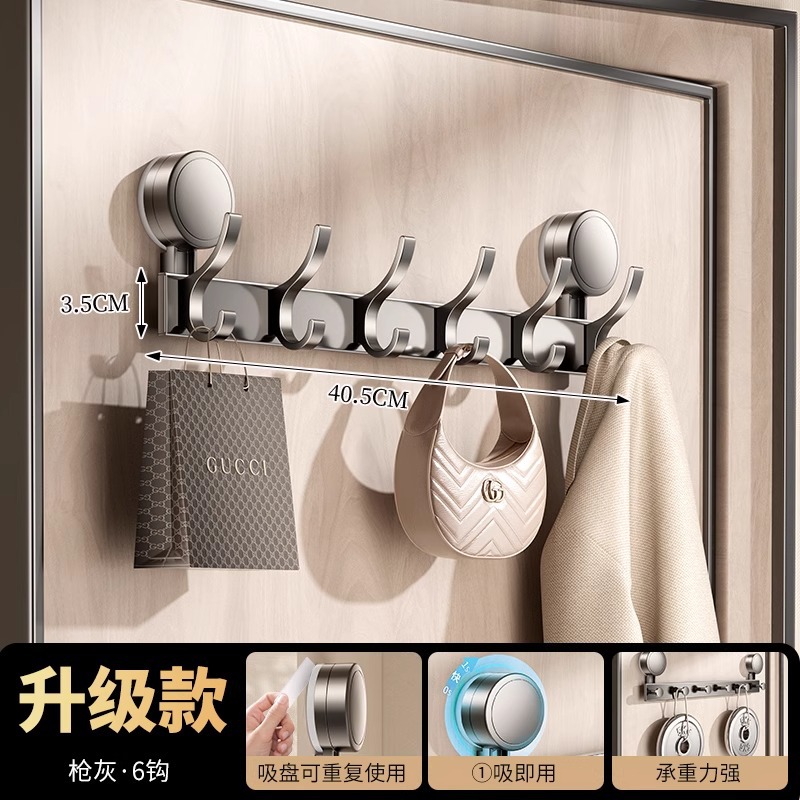 suction cup behind the door-gun gray single hook-6 hook [strong suction cup installation-free]]