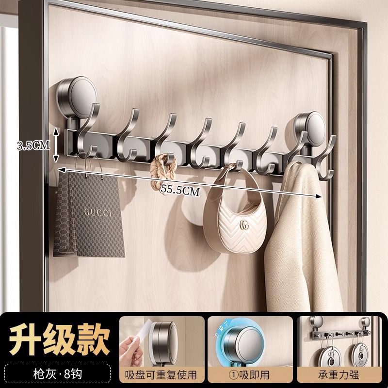 suction cup behind the door-gun gray single hook-8 hook [strong suction cup installation-free]]