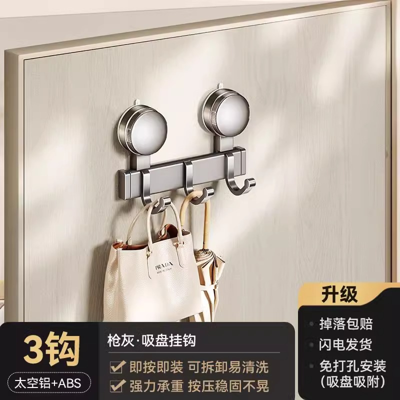 suction cup behind the door-gun gray single hook-3 hook [strong suction cup installation-free]]
