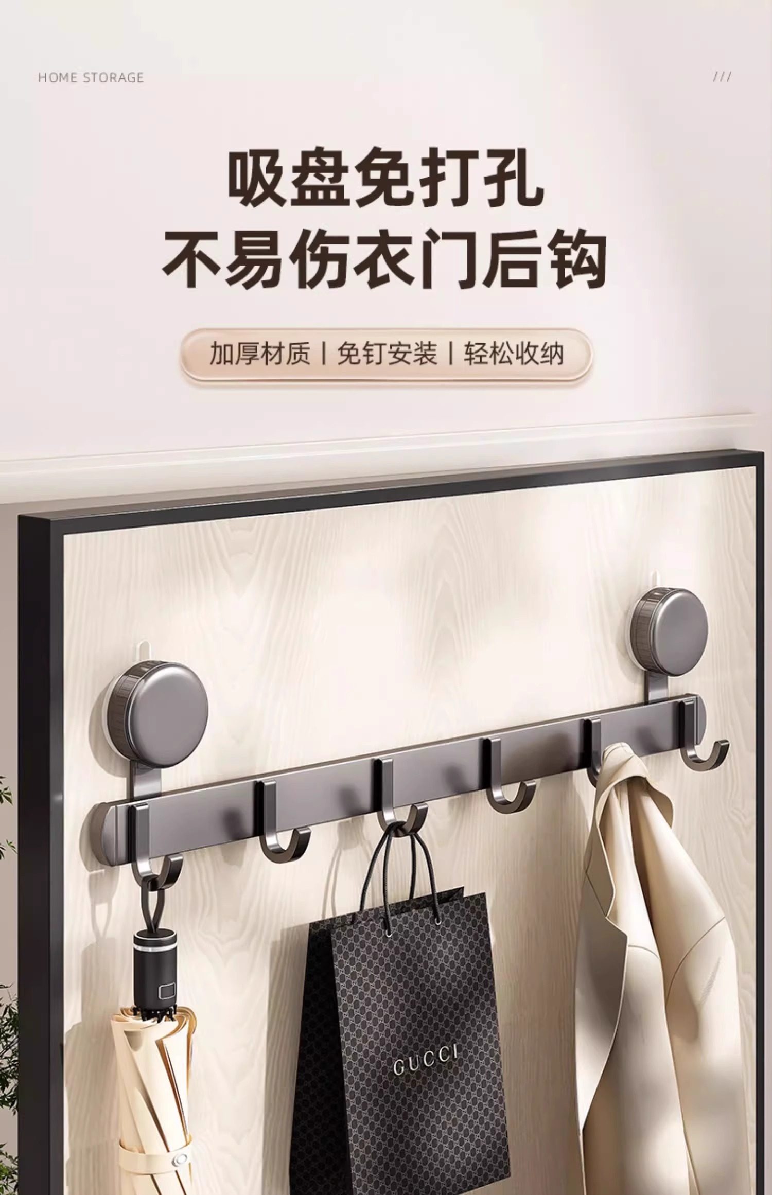 suction cup behind the door-gun gray double hook-5 hook [strong suction cup up and down storage]]