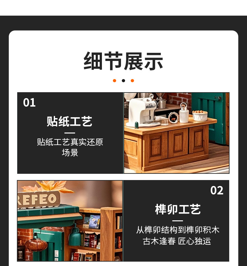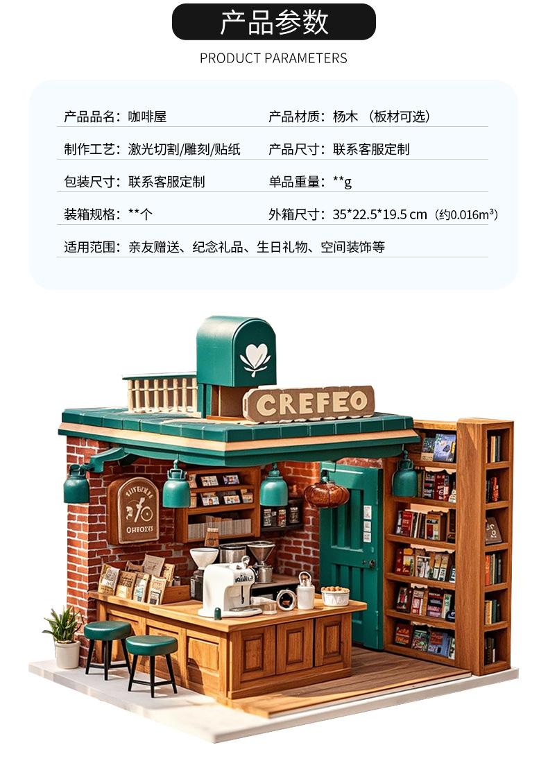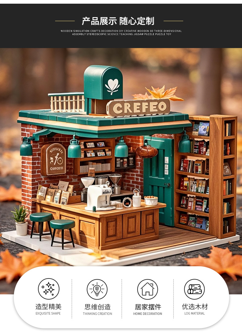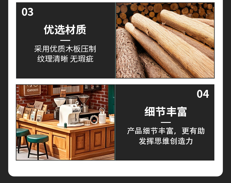 cross-border custom miniature coffee house children's puzzle diy handmade model building blocks toy 3d 3d wooden puzzle