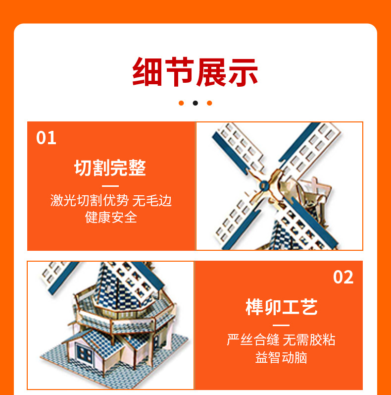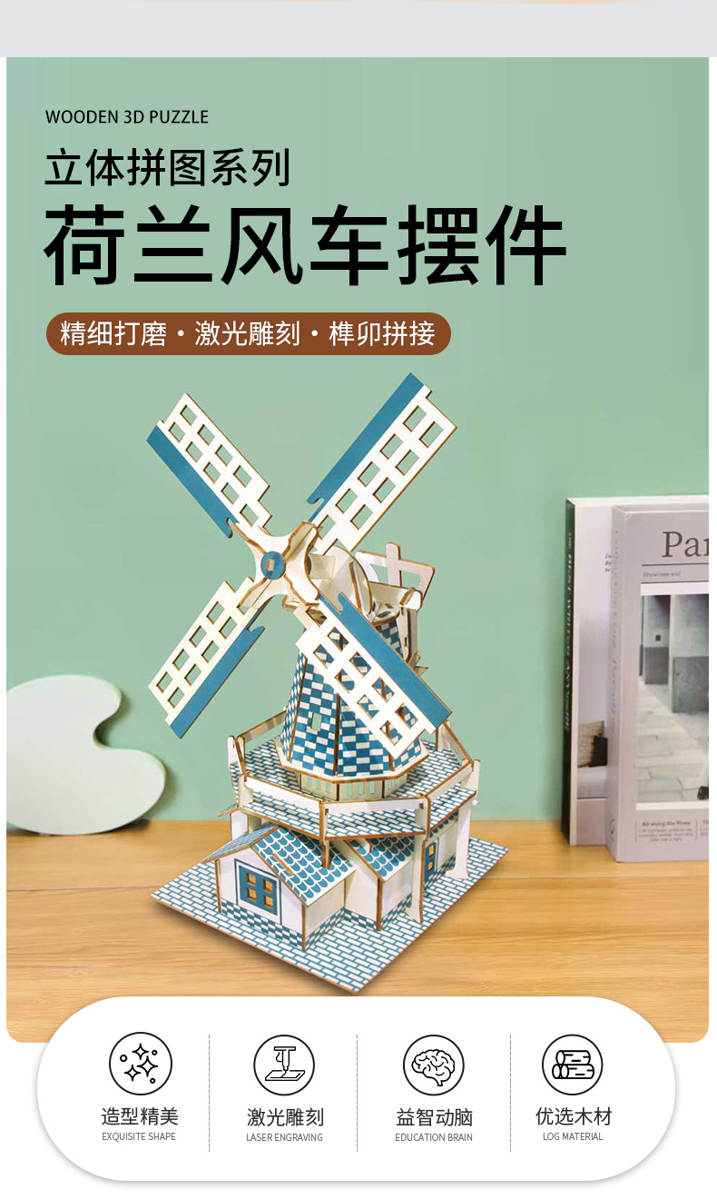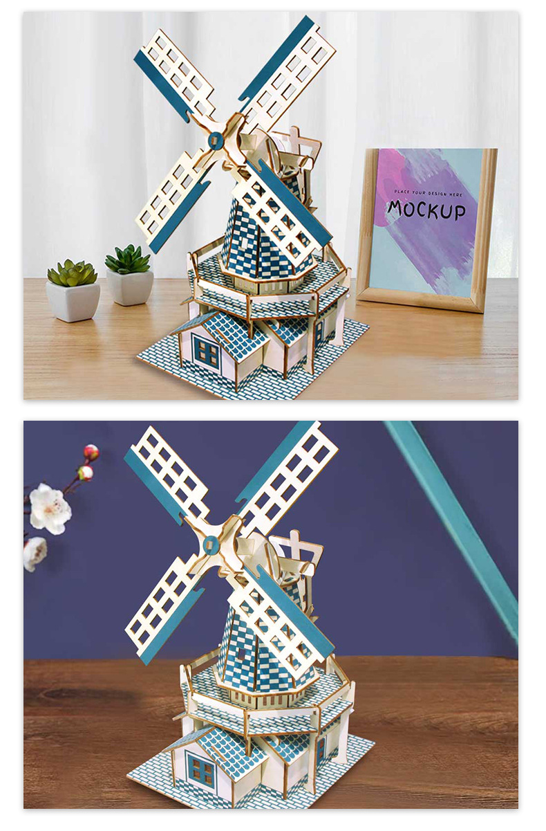 cross-border new 3d 3d puzzle model wood wooden puzzle dutch windmill shape diy handmade custom creative products
