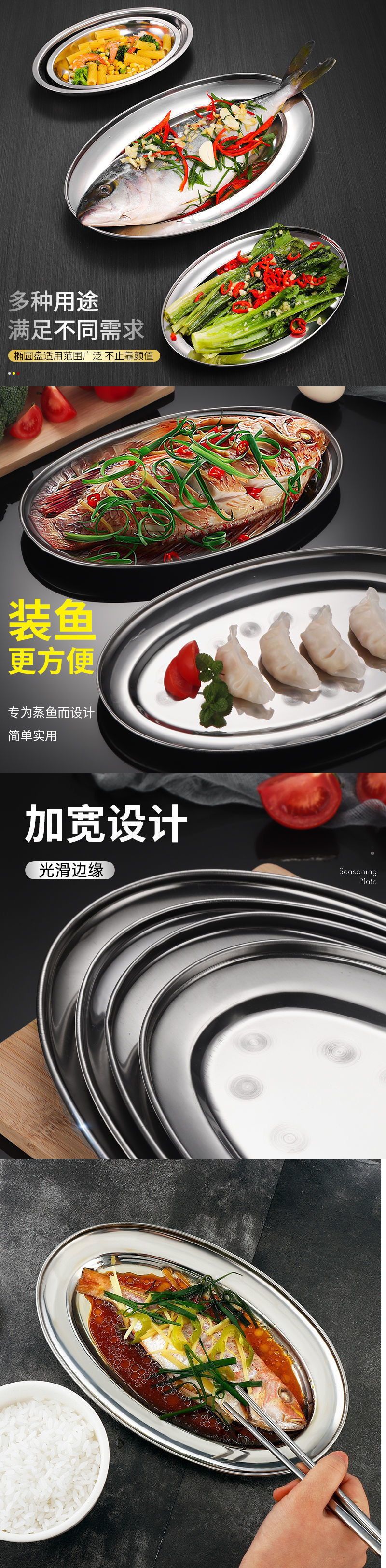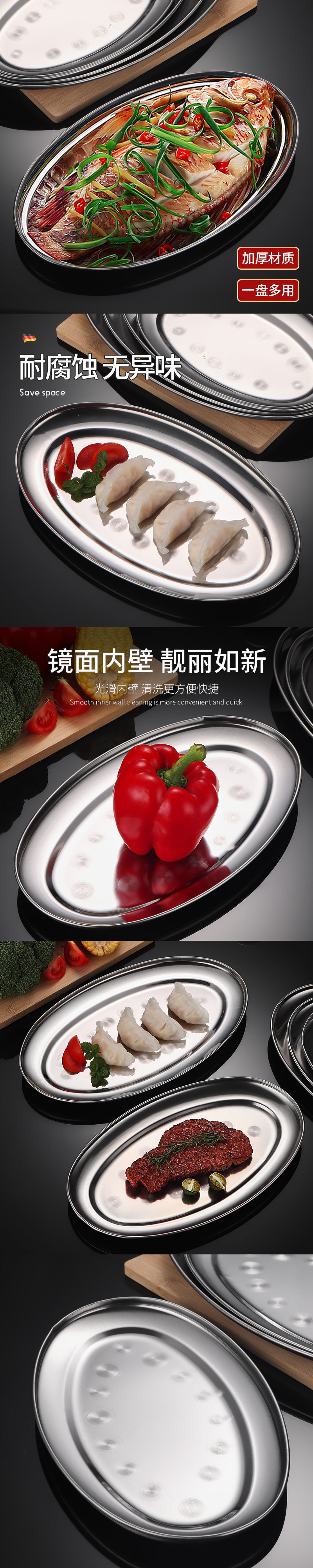 steamed weever dedicated plate stainless steel new year fish steaming plate barbecue plate oval deepening fish-shaped denier-shaped deep plate new
