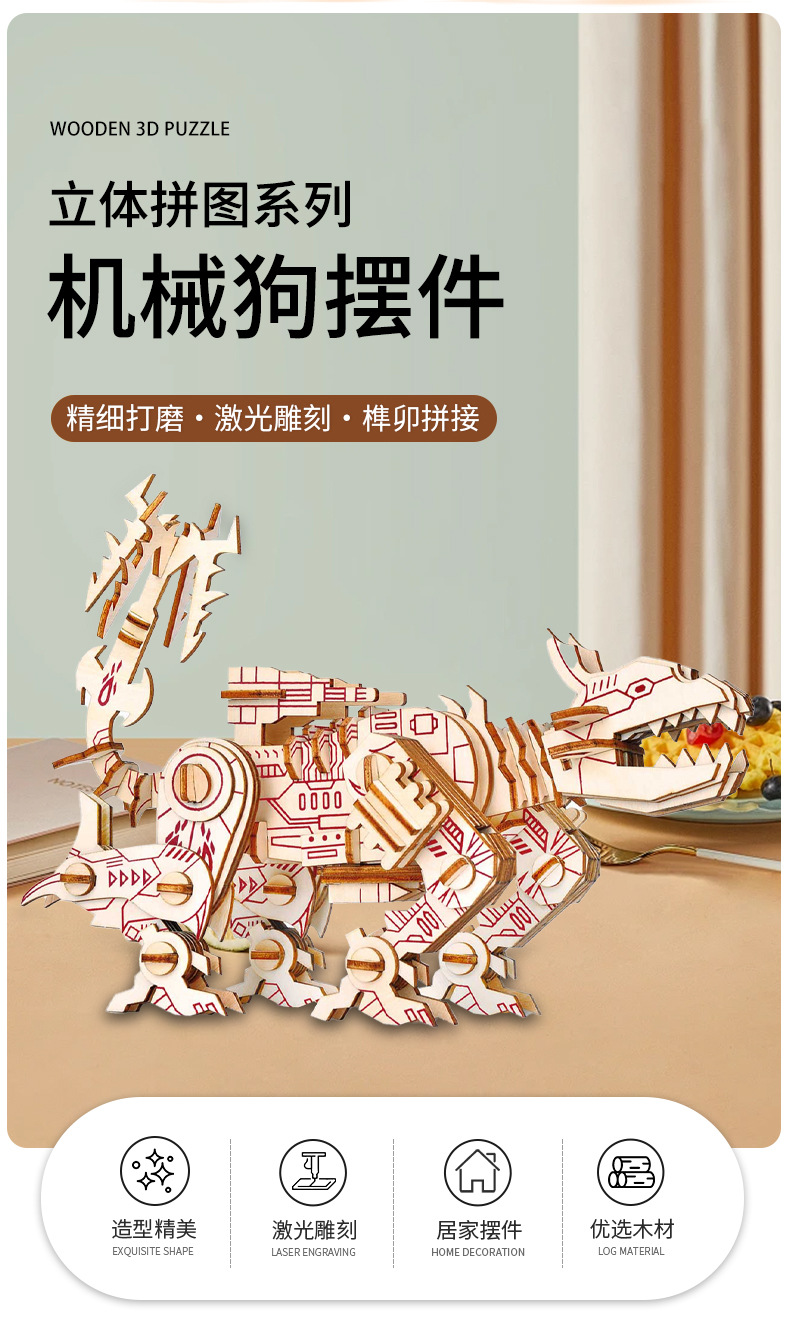 cross-border custom new 3d 3d puzzle model wooden puzzle mechanical dog shape diy handmade creative products amazon