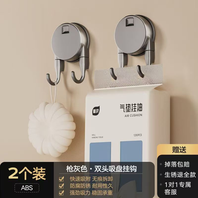 [2 packs] suction cup double hook-gun gray
