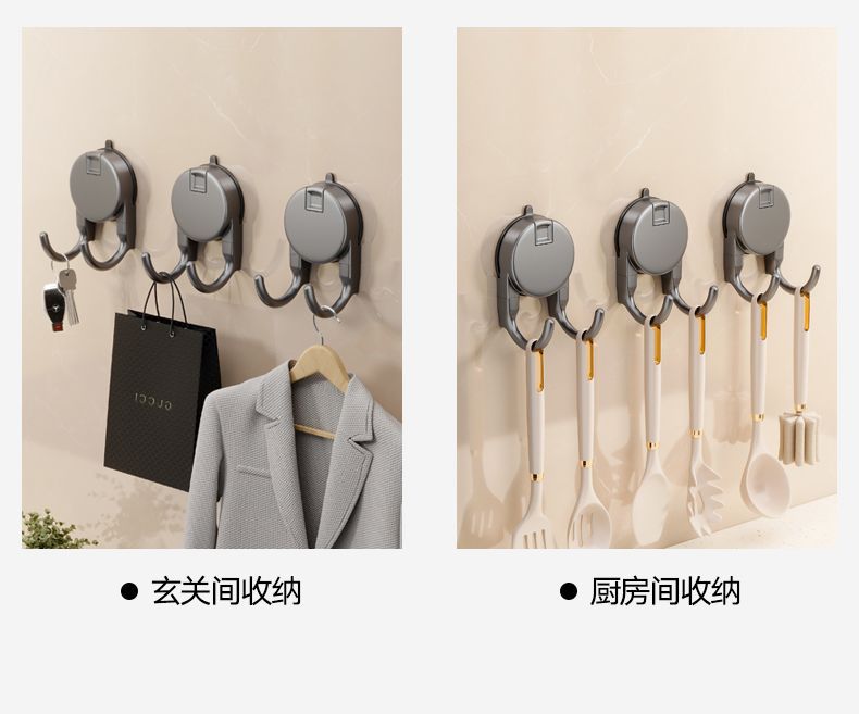 [3 packs] suction cup double hook-gun gray