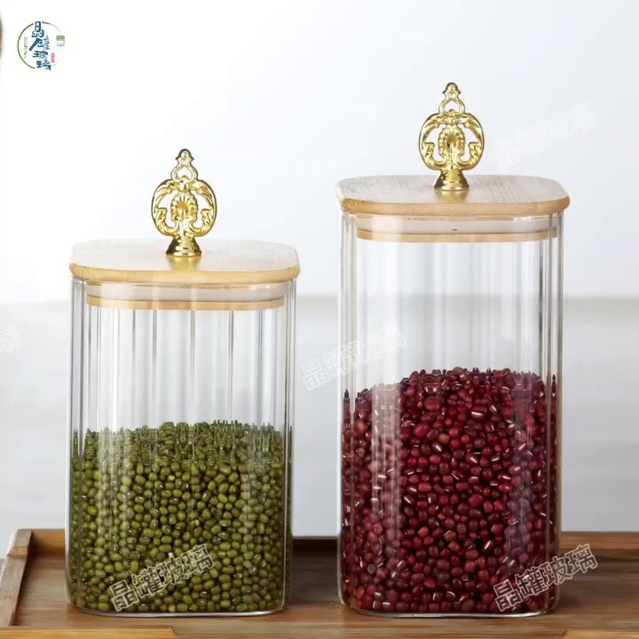 striped glass sealed can new chinese tea cans wooden lid snack jar storage glass jar factory candy box wholesale