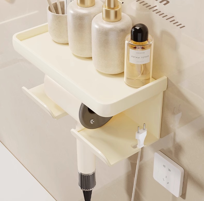 cream white [hair dryer rack] with dining tray