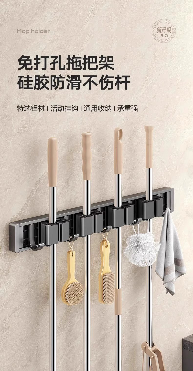 gun gray-mop rack 5 cards 6 hooks