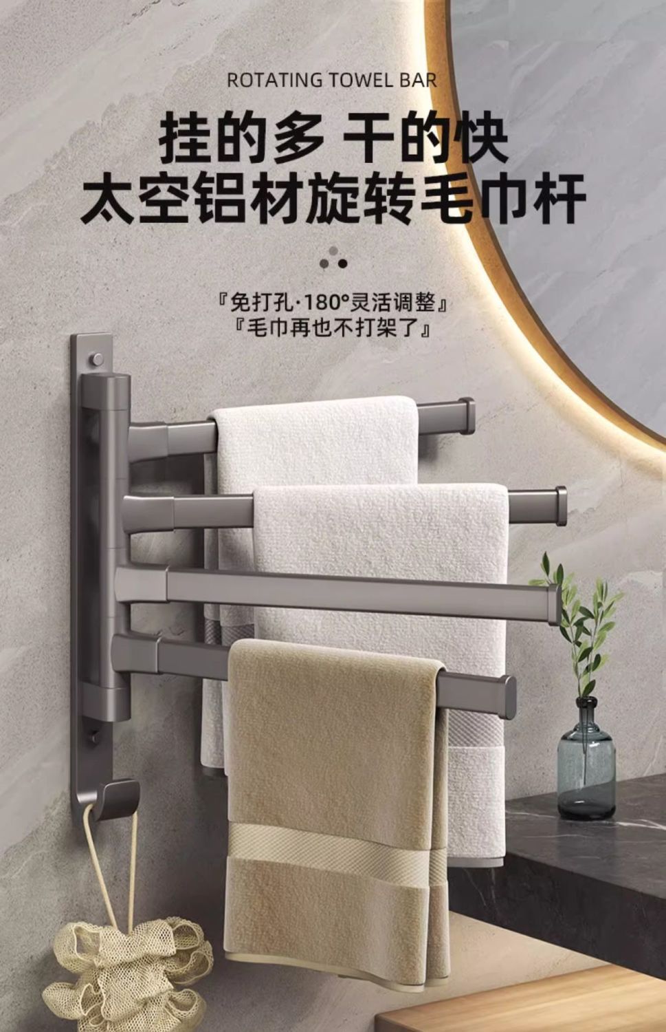black-towel storage rack 1 rod [rotatable]]