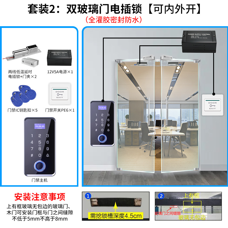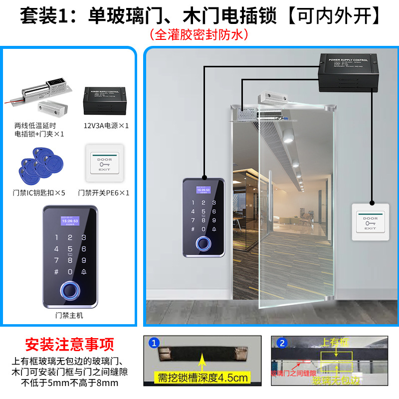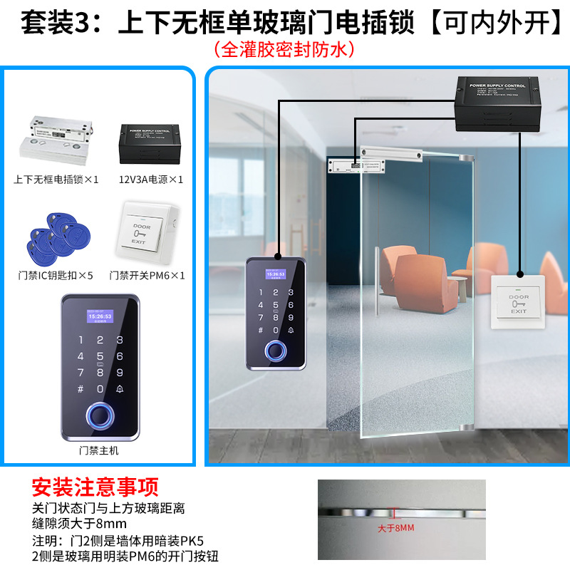 suit 1, single glass door electric bolt lock set