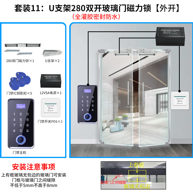 suit 11, double open glass door 280kg magnetic lock set