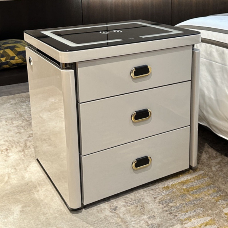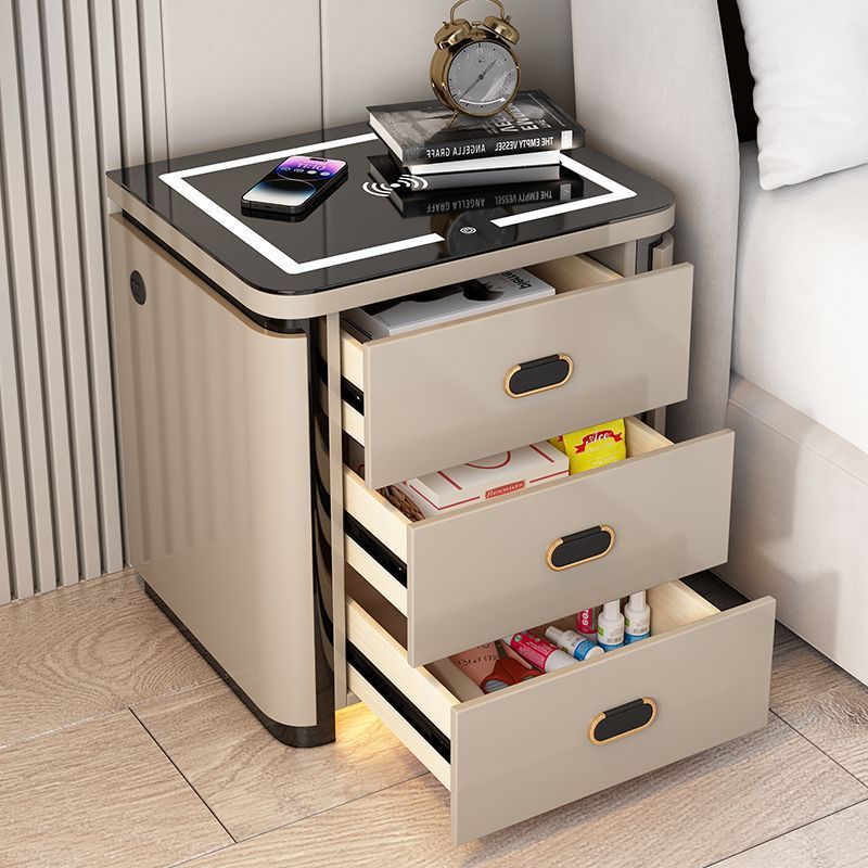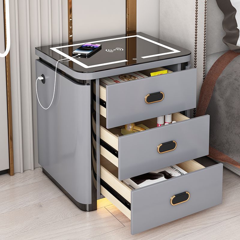 light gray three drawers-tricolour light + wireless charger + usb + induction lamp 53cm
