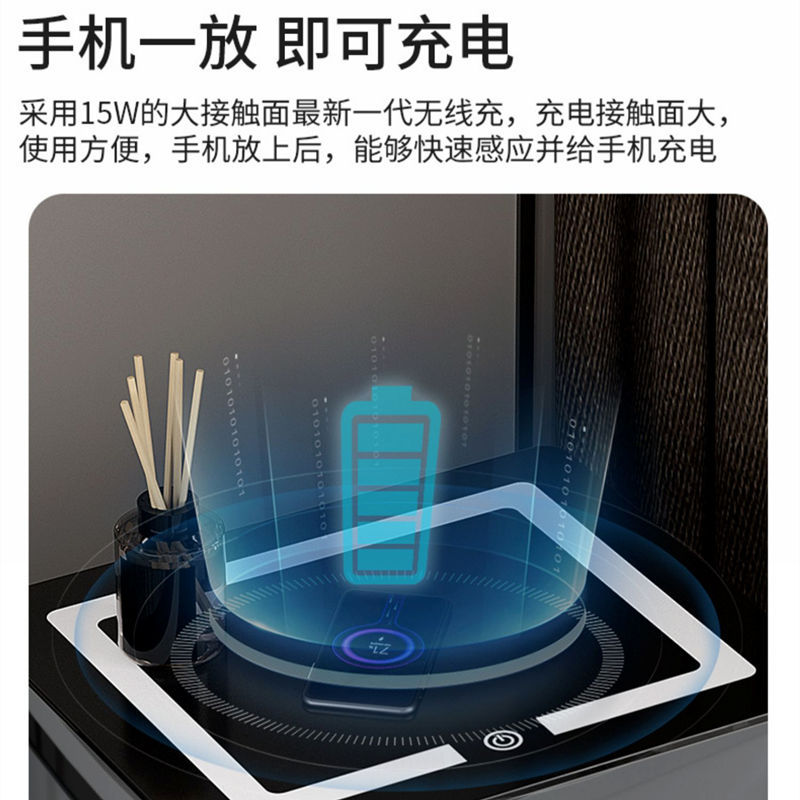 light gray three drawers-tricolour light + wireless charger + usb + induction lamp + audio 53cm