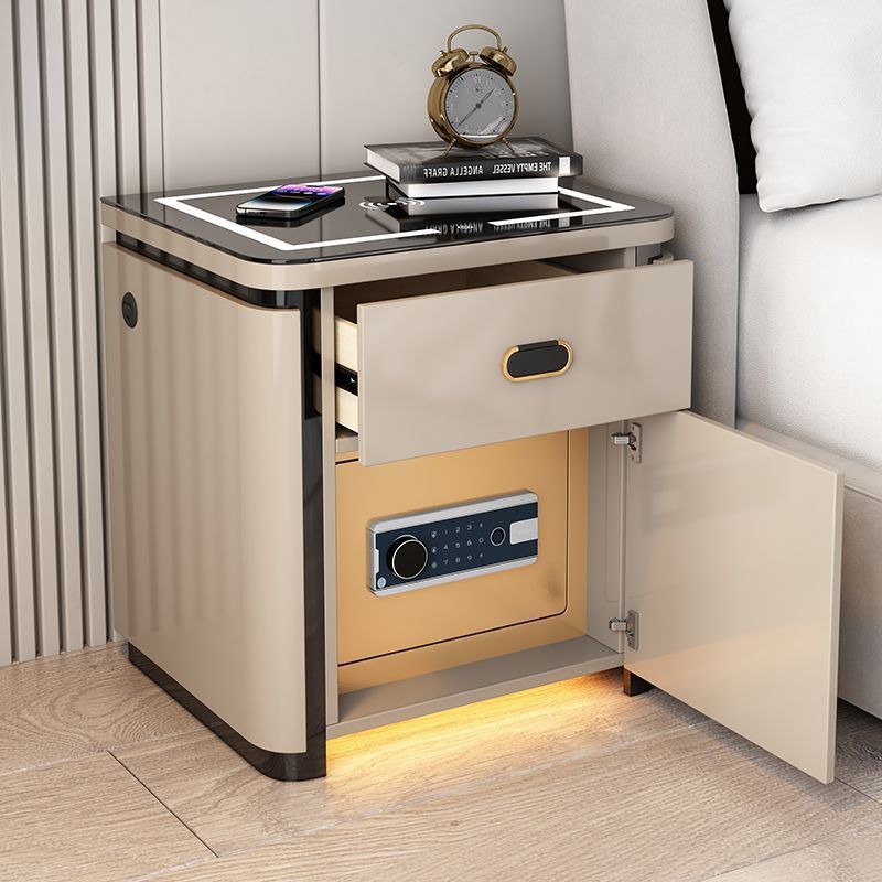 khaki three drawers-tricolour light + wireless charger + usb + audio + voice-activated sensor light 53cm
