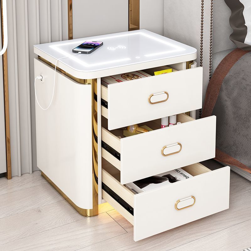 white three drawers-tricolour light + wireless charger + usb + induction lamp 53cm