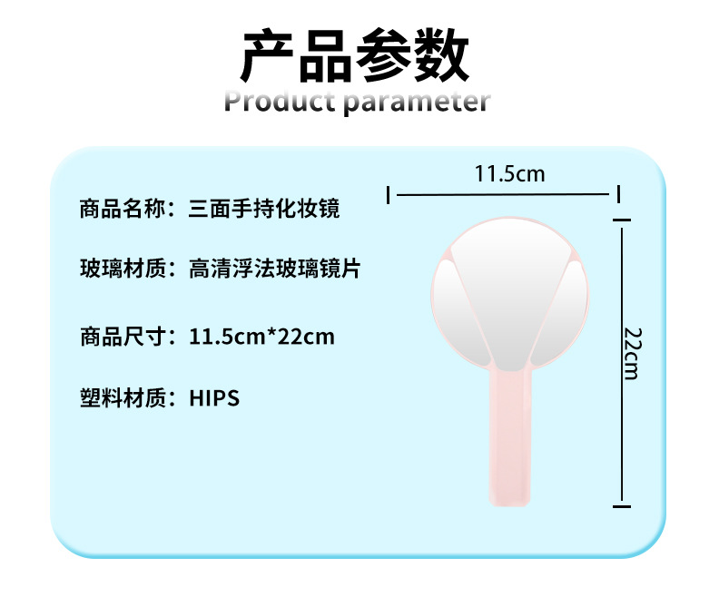 | handheld 3-way mirror (12 * 22cm) | CN¥ 4.59 | 999998 piece available |