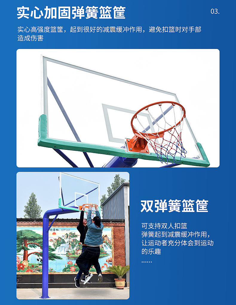 buried b3 model (220 round tube + 10mm tempered backboard + double spring basketball hoop)