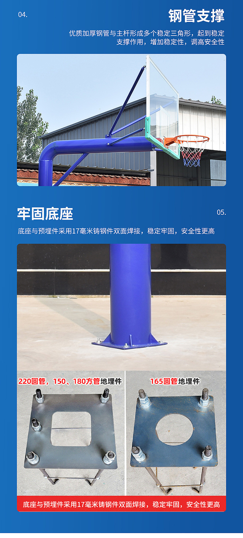 buried b2 (220 round tube + 12mm tempered backboard + double spring basketball hoop)