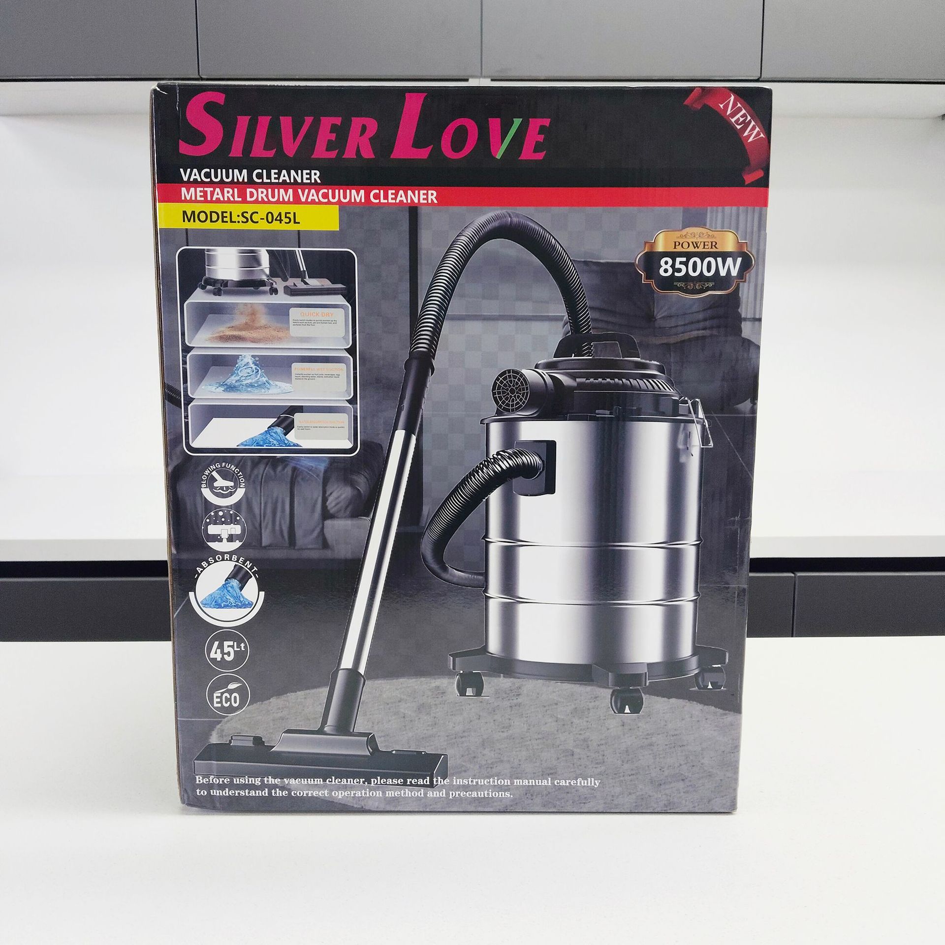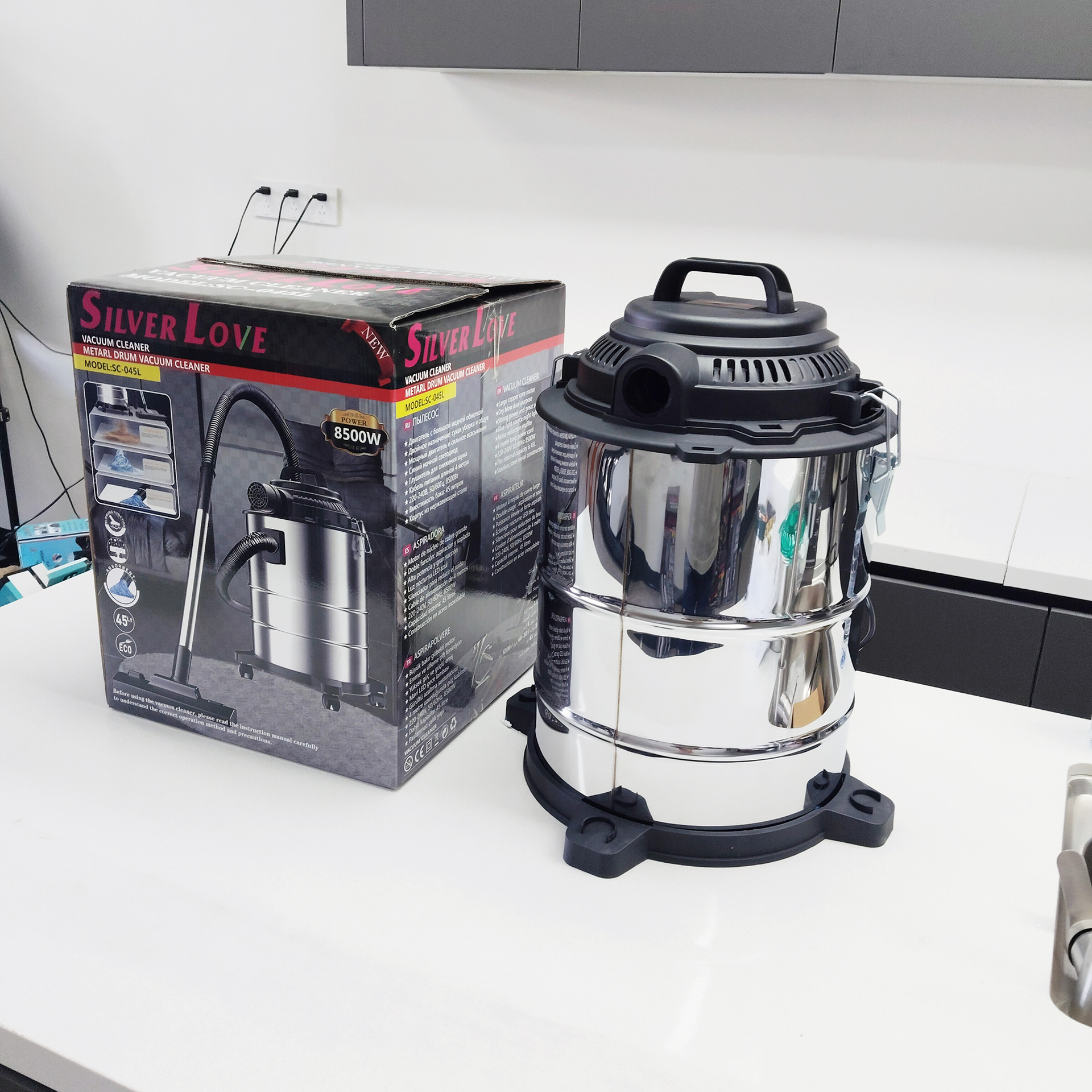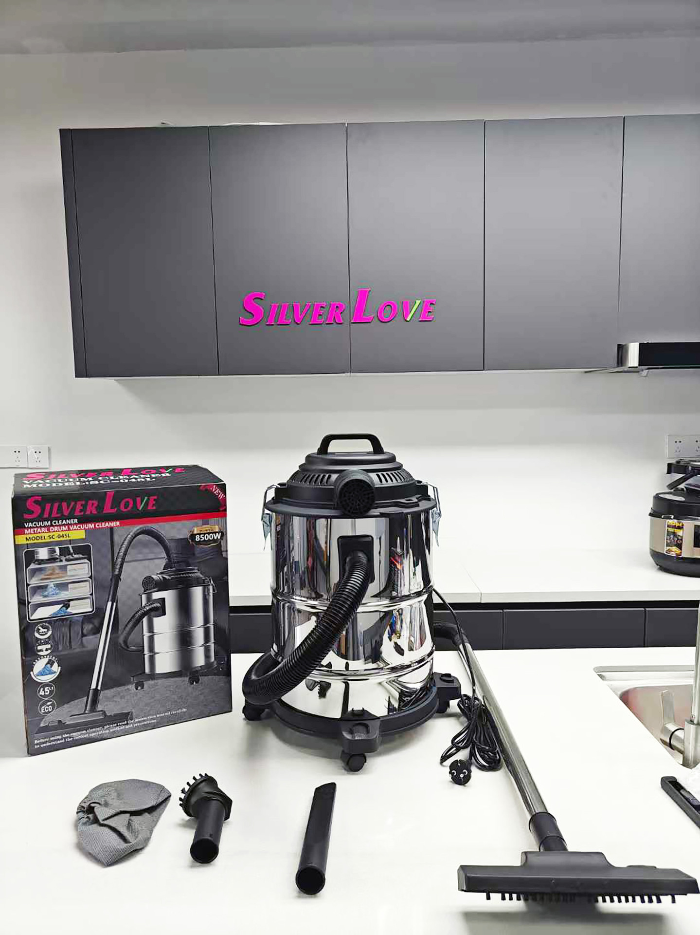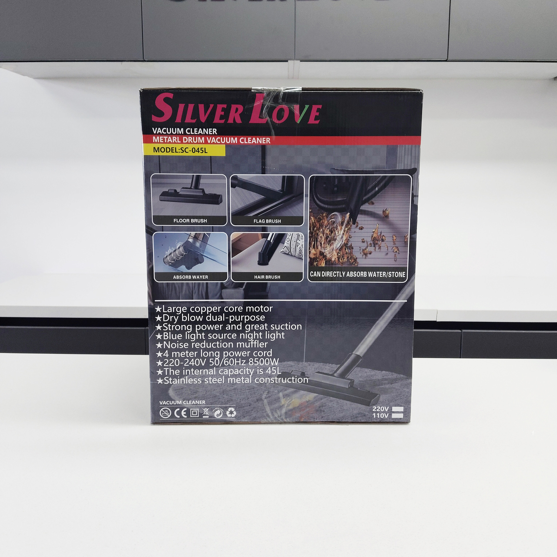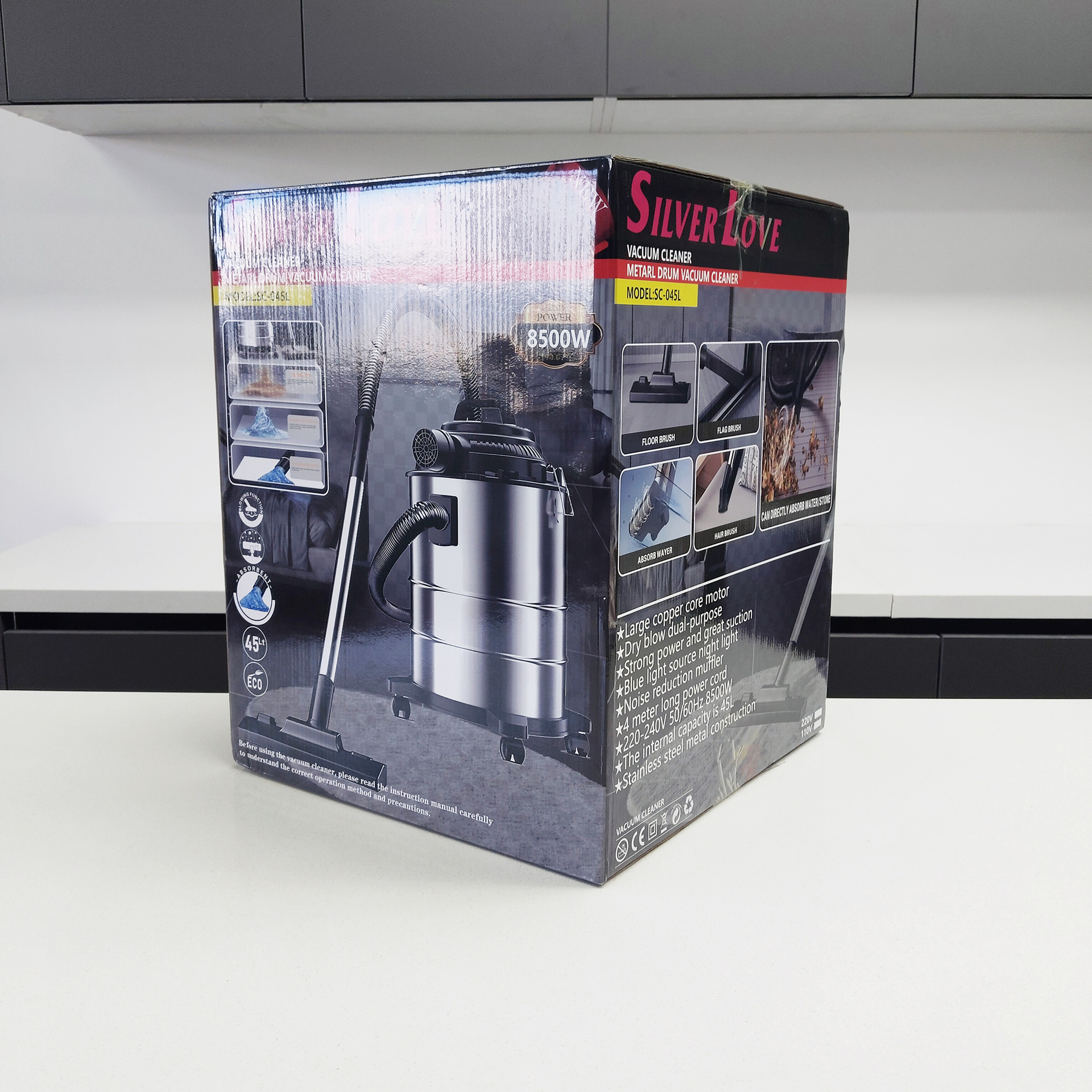 Power: 8500W Power supply: AC 220-240V 50/60Hz Volume: 40L Inner pot: seamless External box size: 36.3x36.3x45.5cm