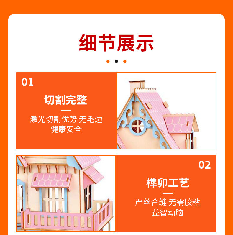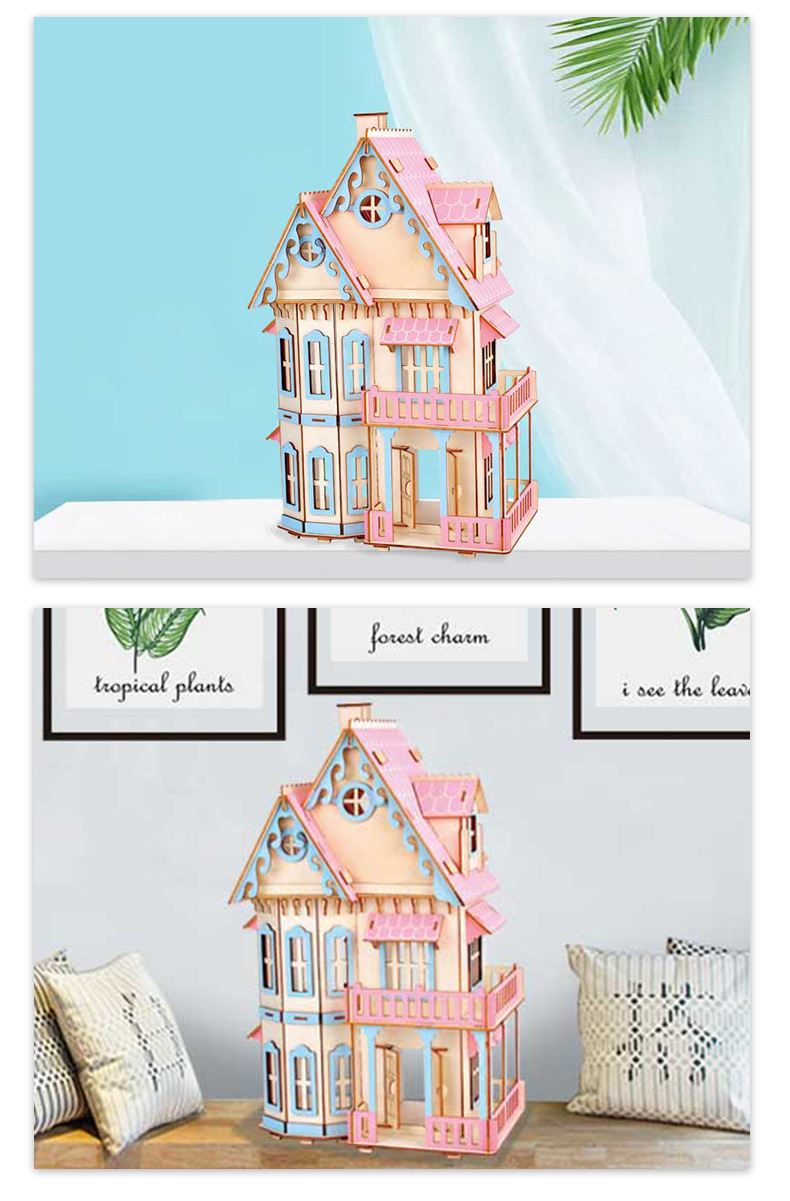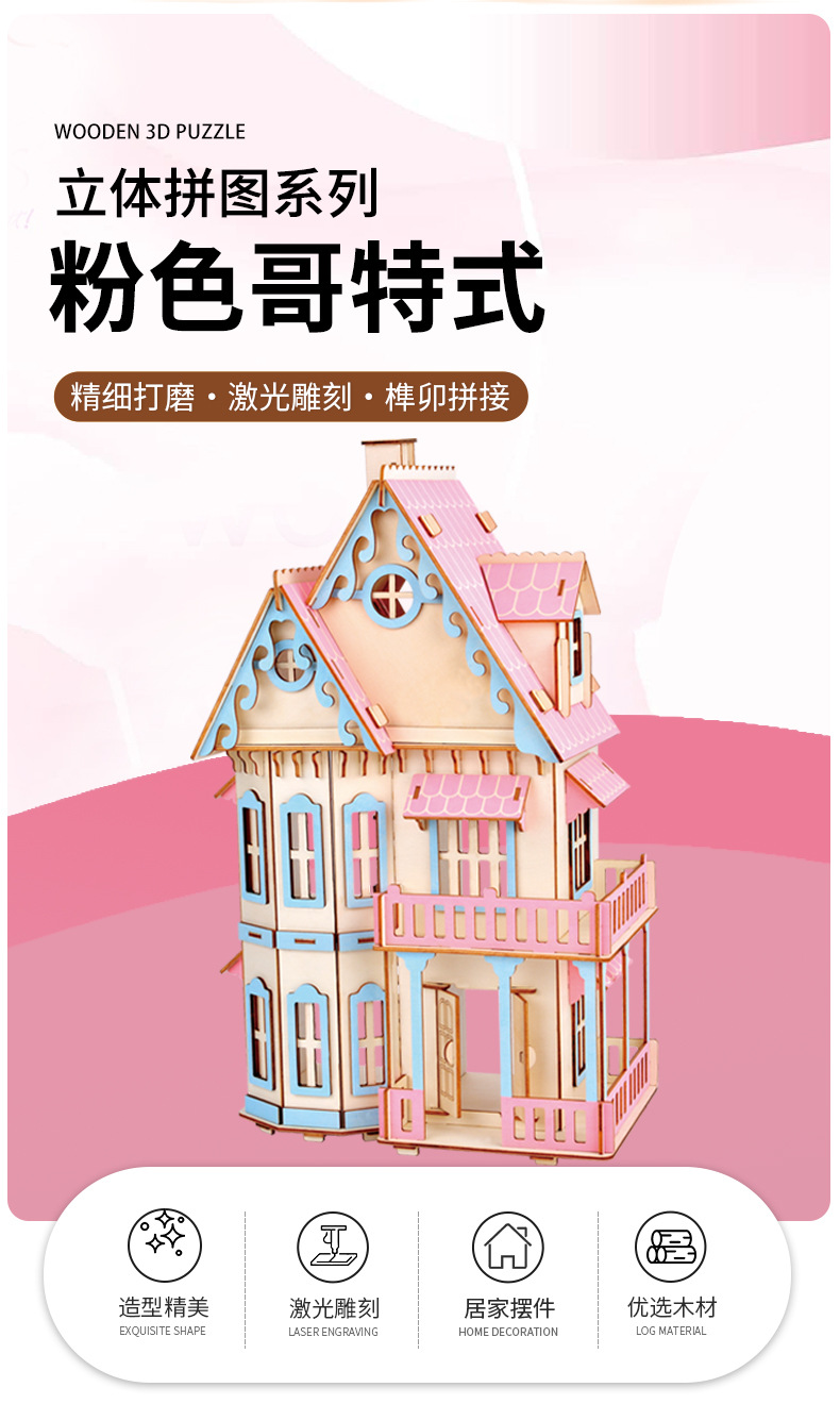 cross-border customized new product 3d wood wooden puzzle pink gothic modeling diy handmade creative temu