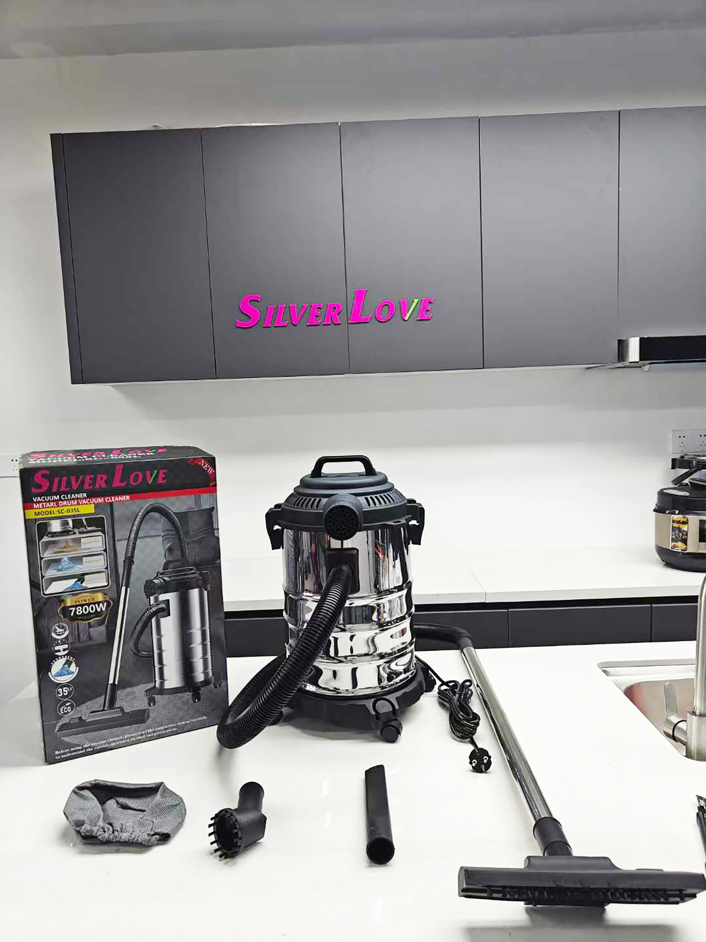 Power: 9500W Power supply: AC 220-240V 50/60Hz Volume: 45L Inner pot: seamless External box size: 36.3x36.3x51.8cm