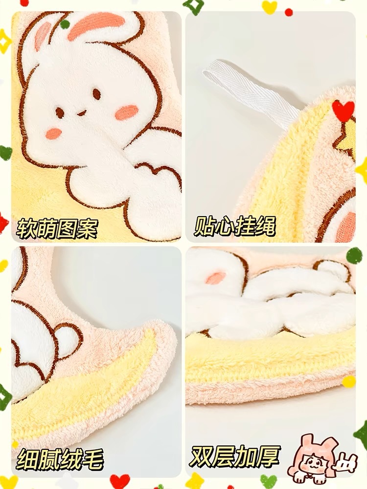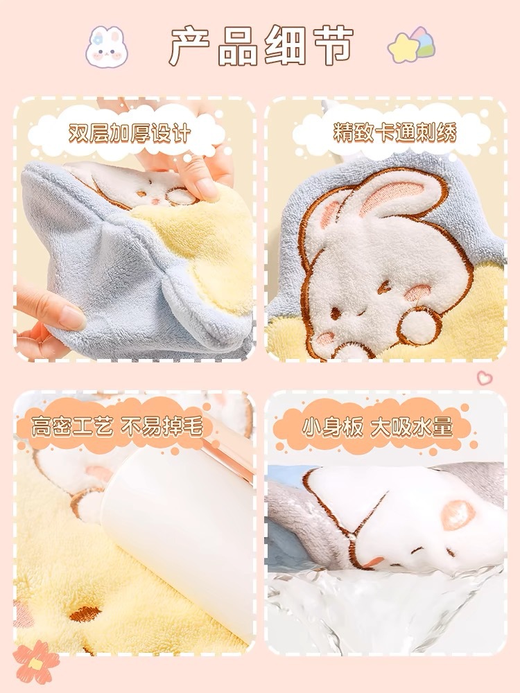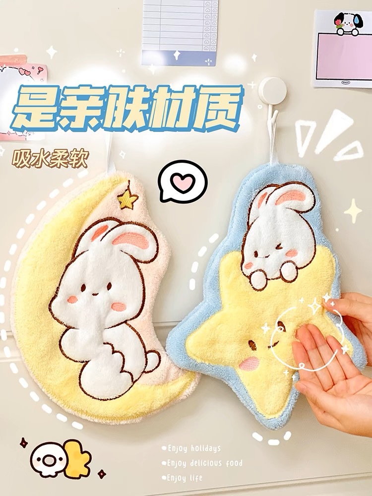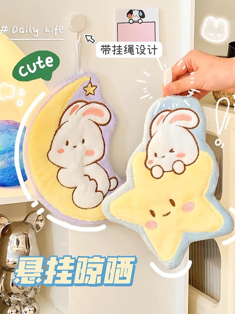 new cartoon moon rabbit hand-wiping small tower hanging absorbent extra thick no hair shedding handkerchief coral fleece factory wholesale