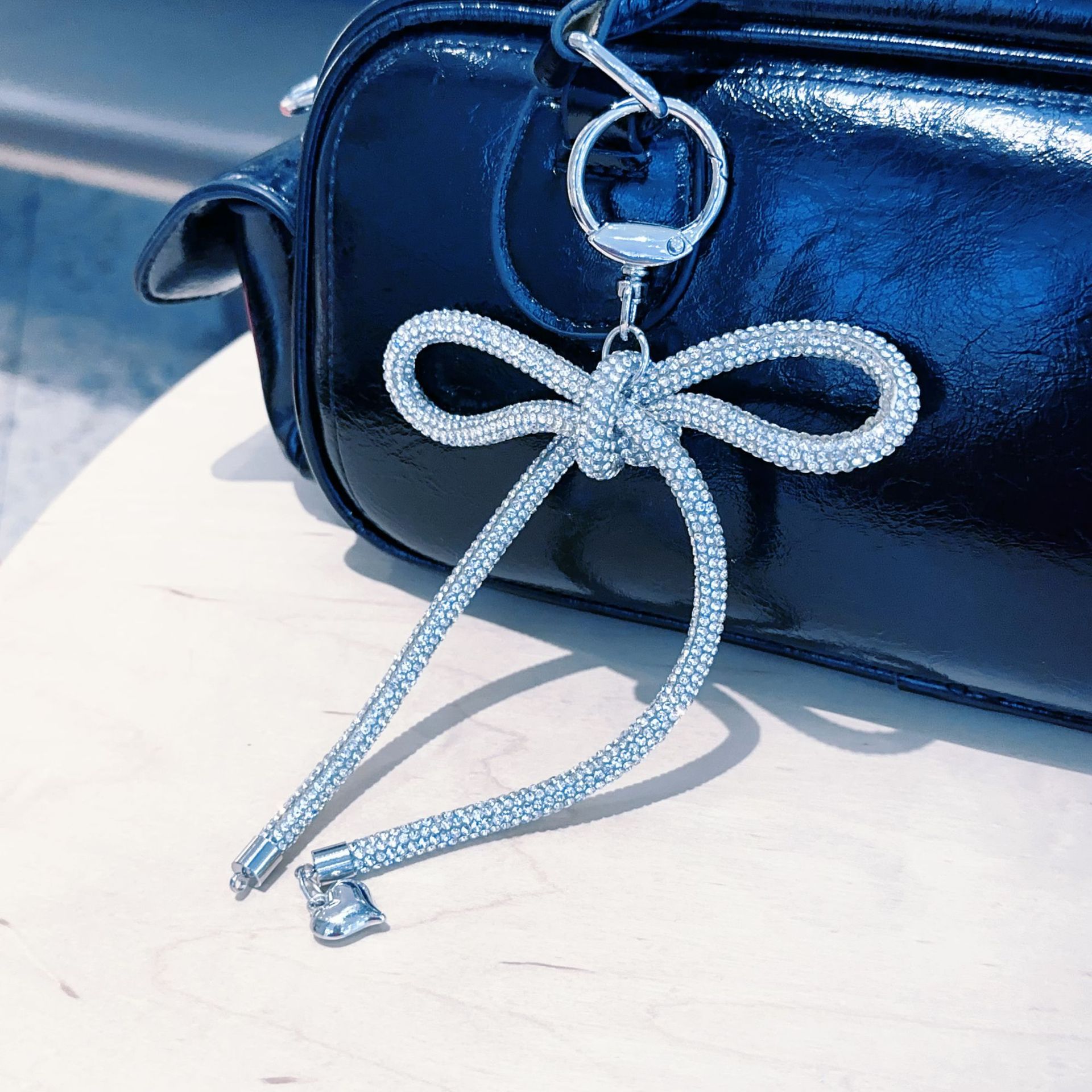 diamond rope bowknot bag pendant-white